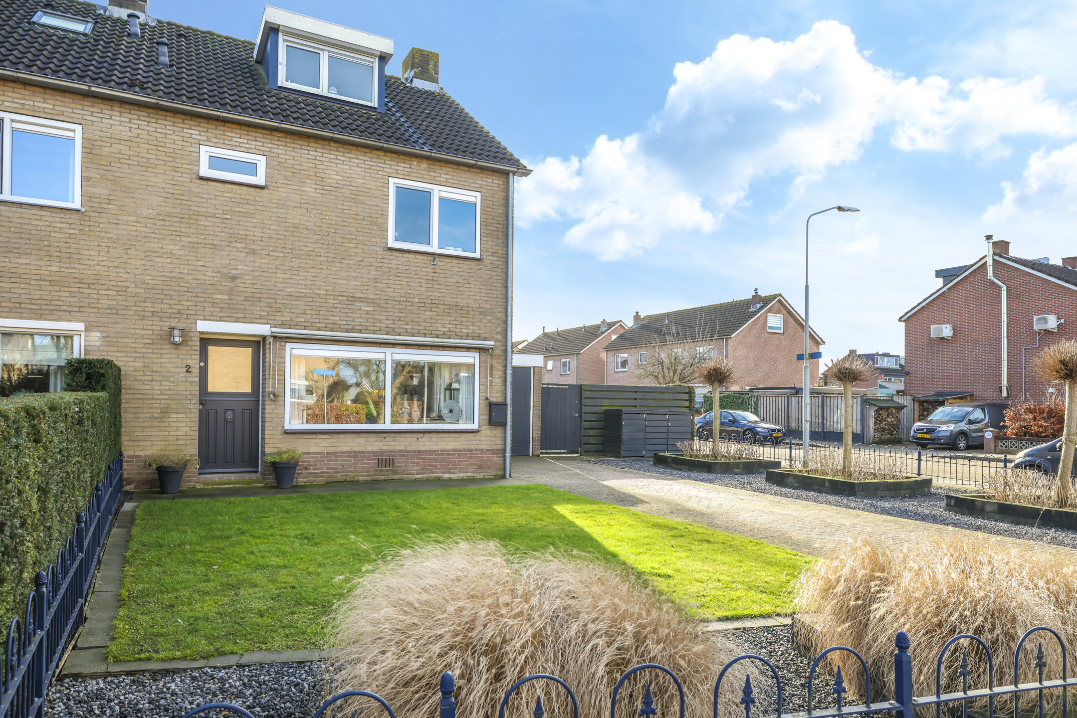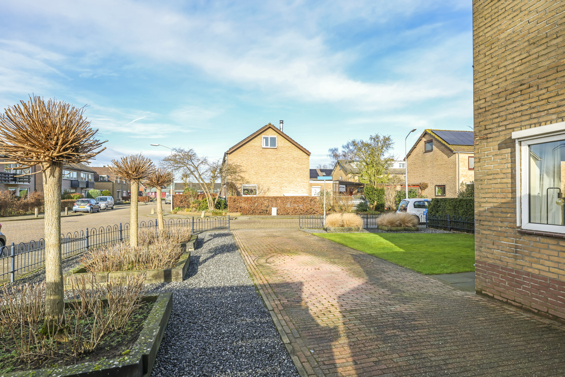 Mede door het grote perceel en de ruimte voor en naast de woning heeft de woning een zeer comfortabele oprit. Hier kun je met gemak meerdere auto’s op eigen terrein parkeren. Je zou er zelfs voor kunnen kiezen om de oprit verder te verbreden waardoor je soort van ‘parkeerhavens’ creëert. Je kunt dan schuin naast elkaar parkeren waardoor je er elkaar niet in de weg staat.
