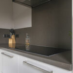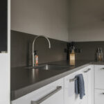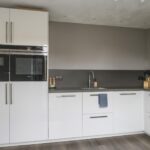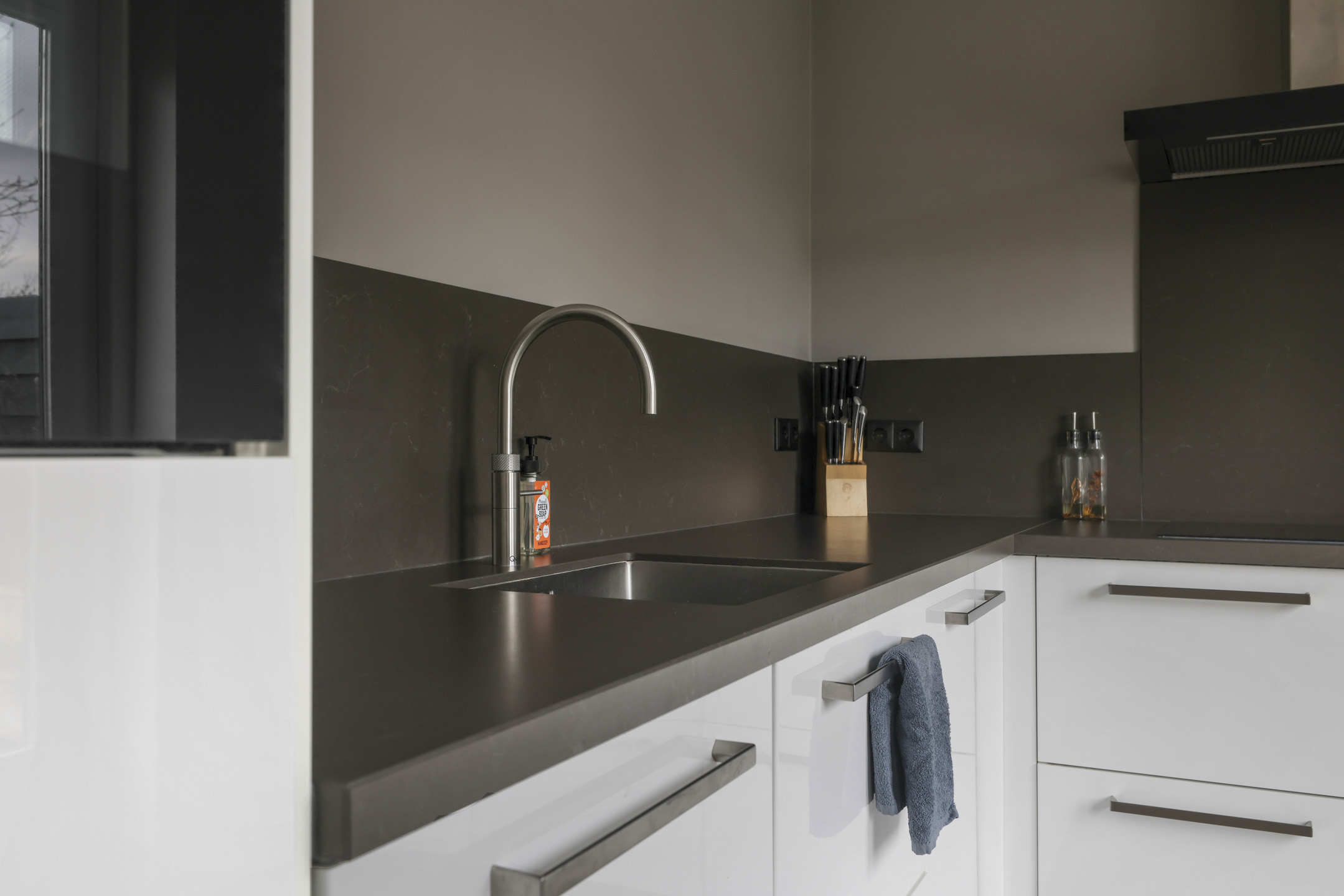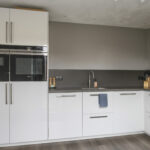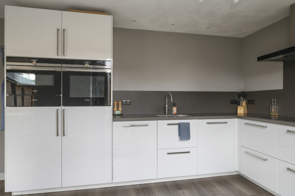 Vergrootte inbouwkeuken met alles erop-en-eraan, waaronder een Quooker en stoomoven