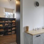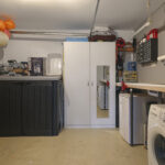 Origineel heeft deze woning een inpandige garage. Echter is bij de woning een deel van de garage opgeofferd om meer ruimte in de keuken te verkrijgen. Daardoor is de garage meer een inpandige berging/bijkeuken geworden. Hier zijn namelijk o.a. de opstelling van de wasmachine en wasdroger en een werkblad met spoelbak terug te vinden. Ook kan je hier nog met gemak een extra koelkast of vriezer kwijt, of gebruik je desgewenst de kanteldeur om hier de fietsen veilig in te kunnen stallen.