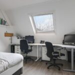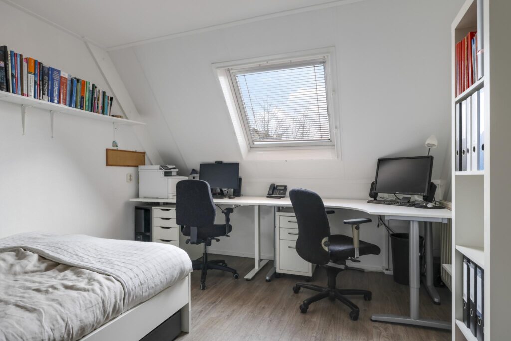 De 2e verdieping is zeer verrassend te noemen. In de huidige situatie is deze ruimte bereikbaar via een vlizotrap. Echter is de verdieping verrassend ruim en hoog waardoor er veel potentie in zit. Je zou bijvoorbeeld boven de trap naar de 1e verdieping nog een trapopgang kunnen maken. Op de 2e verdieping is hier in 2023 al rekening mee gehouden doordat de aansluitingen van de hybride warmtepomp/cv-ketel zijn verplaatst zodat die niet in de weg hangen. Met een vaste trap is de ruimte eenvoudig op te delen in een overloop met vide, een bergzolder én een riante 5e slaapkamer. De nokhoogte is ca. 2,4m waardoor dit praktisch bruikbare ruimtes zouden zijn.