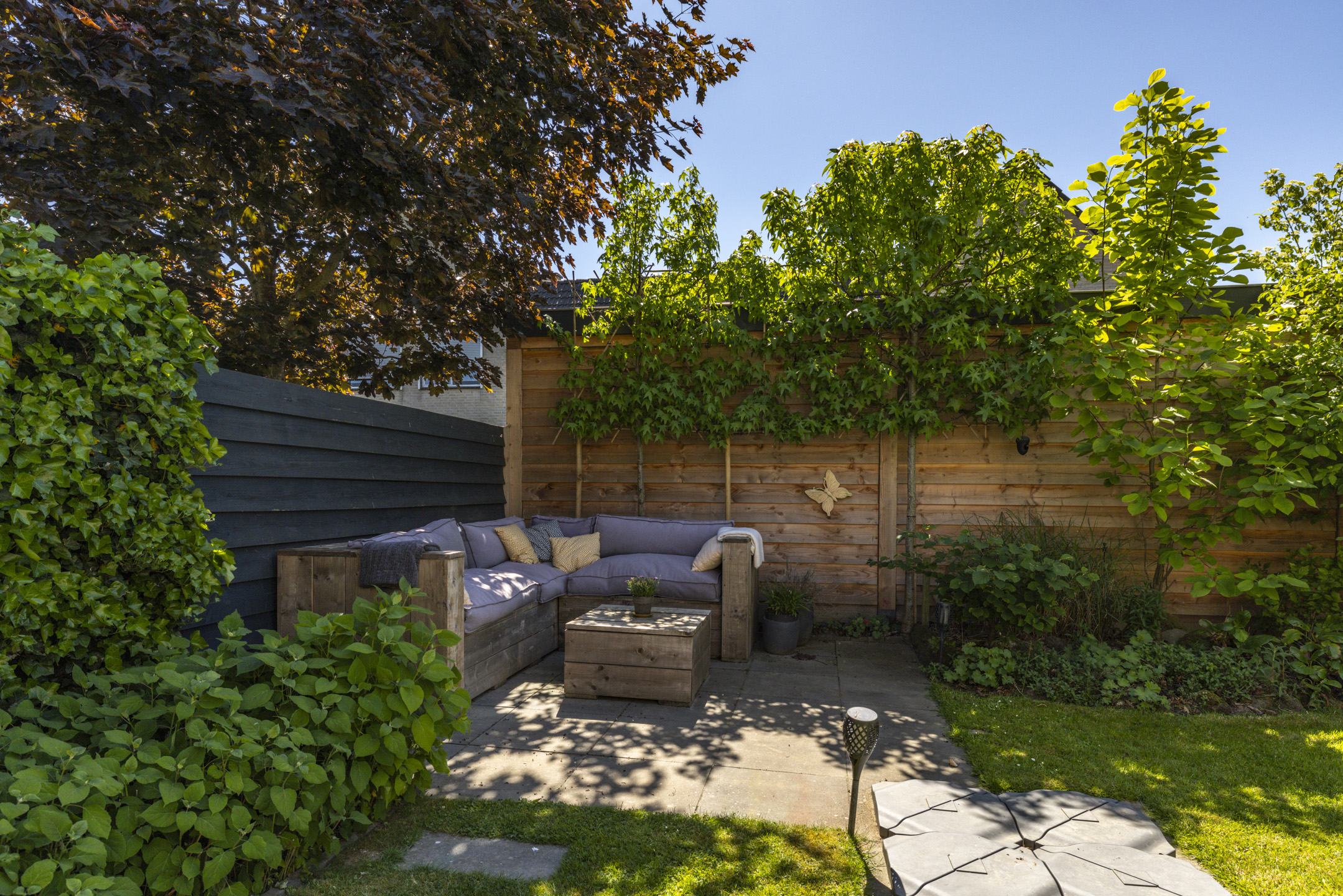 Heerlijke groene en afgeschermde tuin op het zuiden, gericht op het buitenleven