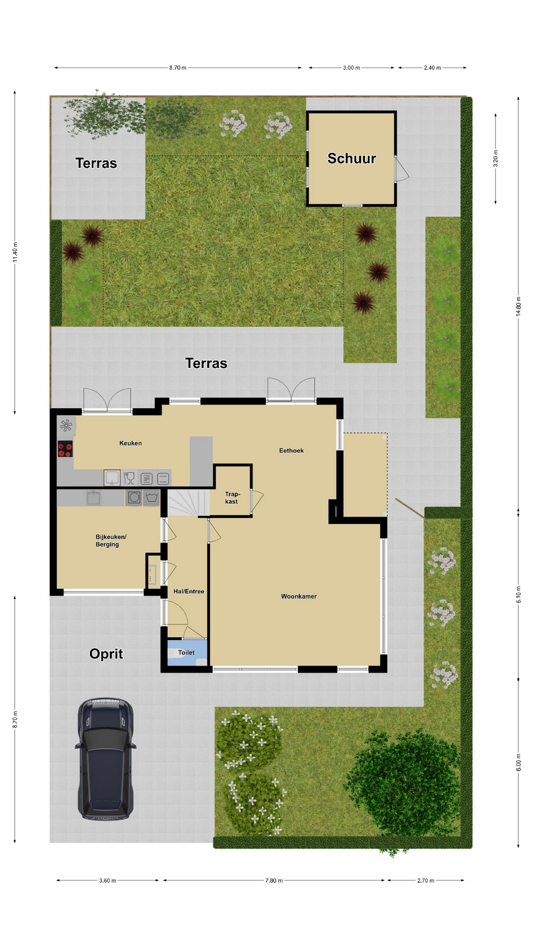 Parkeergelegenheid voor 2-3 auto’s op eigen terrein