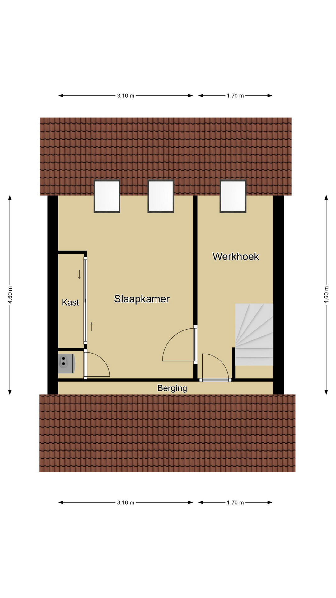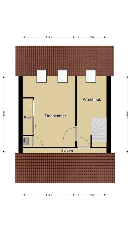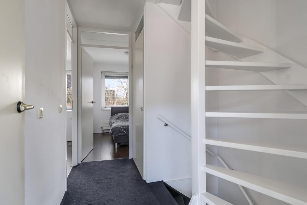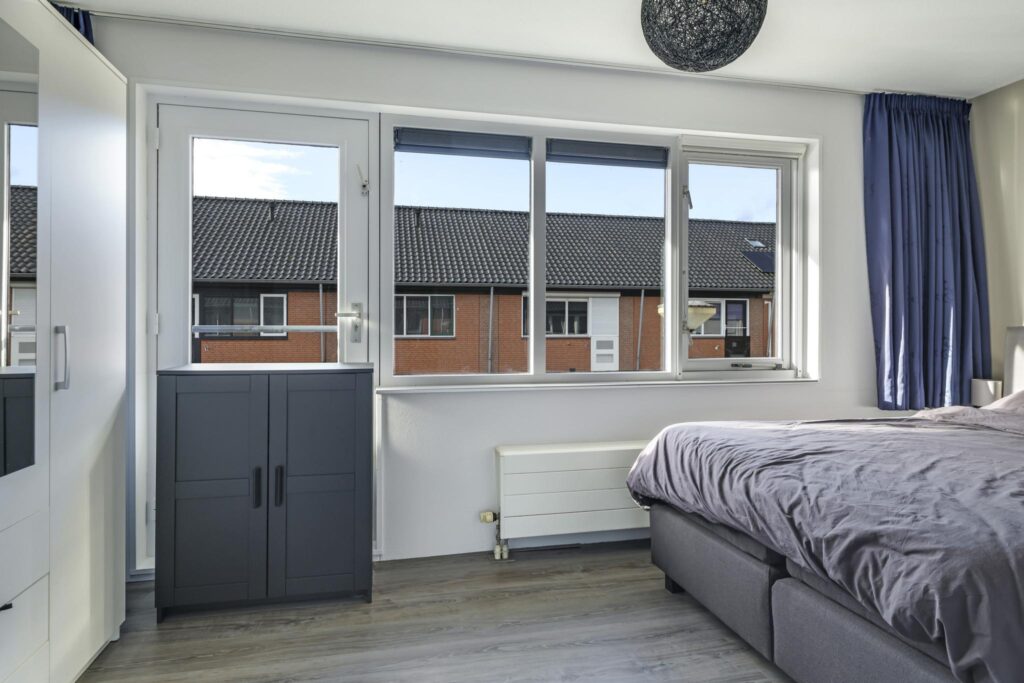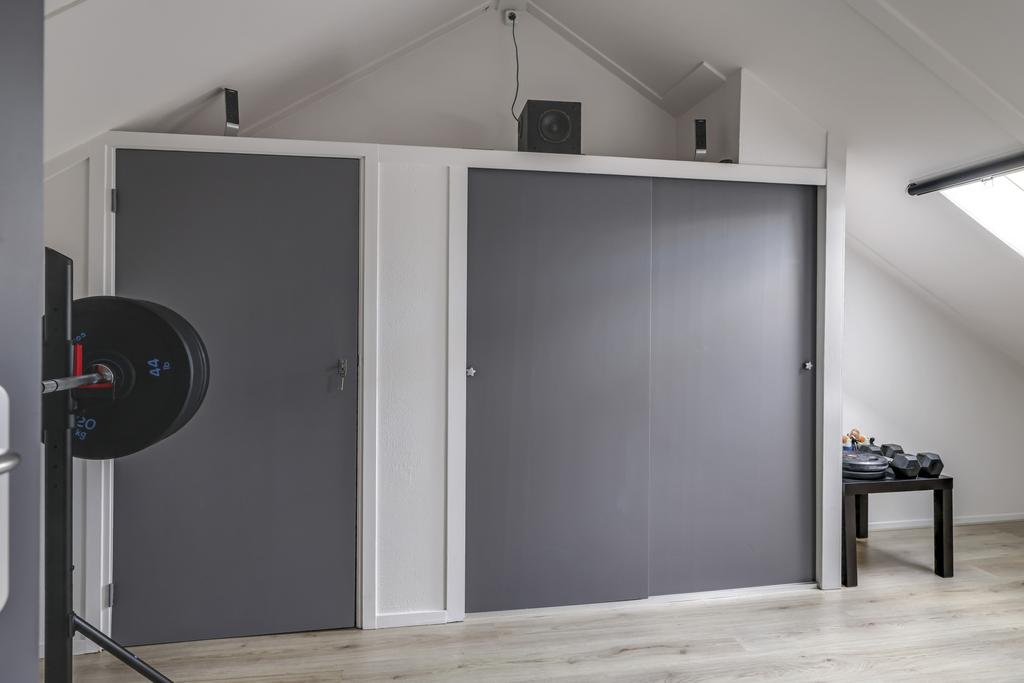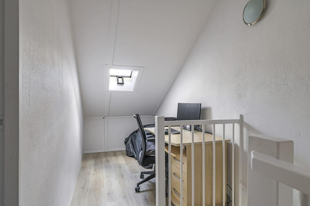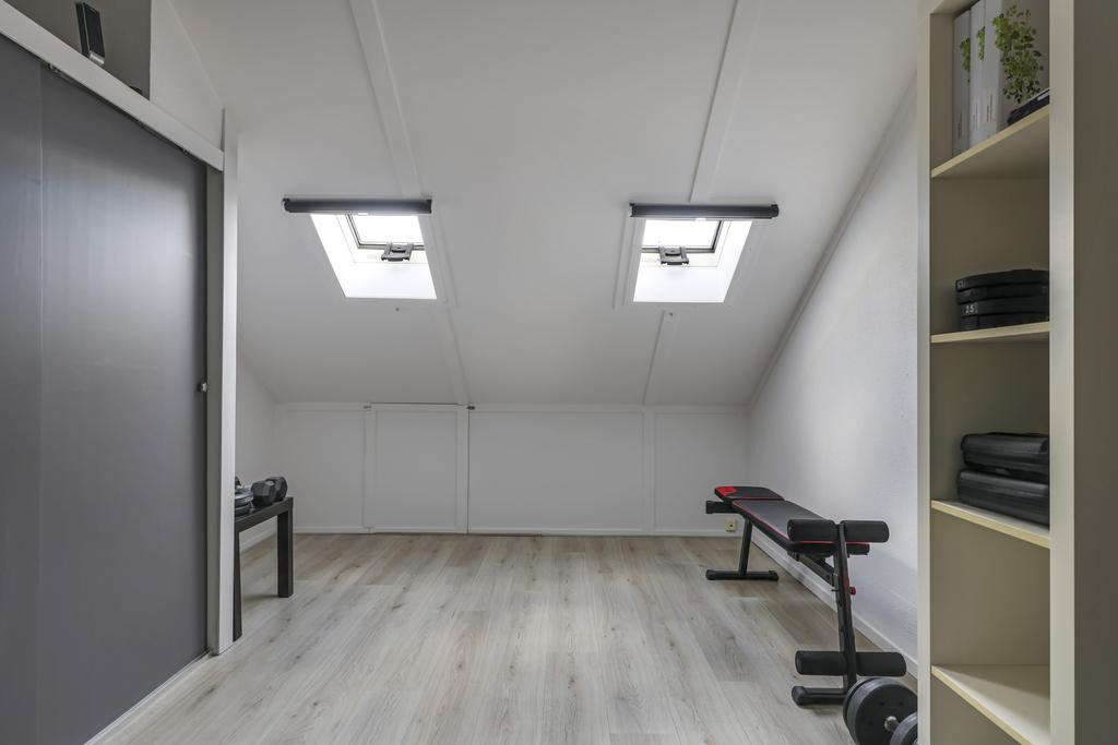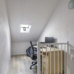 Via een vaste trap is de 2e verdieping bereikbaar. Deze 2e verdieping is opgesplitst in een voorzolder met werkhoek en een vierde slaapkamer voorzien van vaste kasten en 2 dakramen. Ook is er een extra dakraam geplaatst op de voorzolder welke niet alleen extra daglicht geeft op de voorzolder maar ook in de trapopgang. De cv-ketel is keurig weg gewerkt in de kast, zodat deze niet in het zicht hangt. Ook vinden we zowel op de voorzolder als in de slaapkamer nog knieschotten terug, die zorgen voor extra opbergruimte. Erg handig om toch nog even de laatste spullen op te slaan.