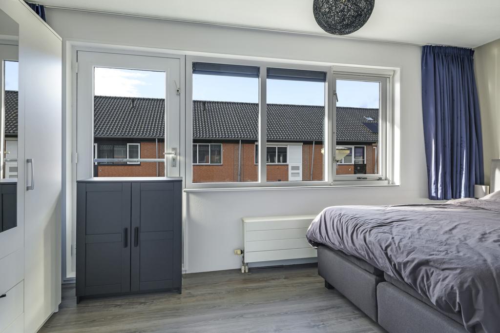 Op de 1e verdieping geeft een prettige overloop toegang tot 3 slaapkamers en de badkamer. De hoofdslaapkamer is verrassend ruim en aan de voorzijde gelegen. Een Frans balkon geeft de kamer een extra element. De twee andere kamers zijn absoluut prima kinderkamers te noemen. Alle kamers zijn met elkaar verbonden middels een verzorgde, doorlopende laminaatvloer.