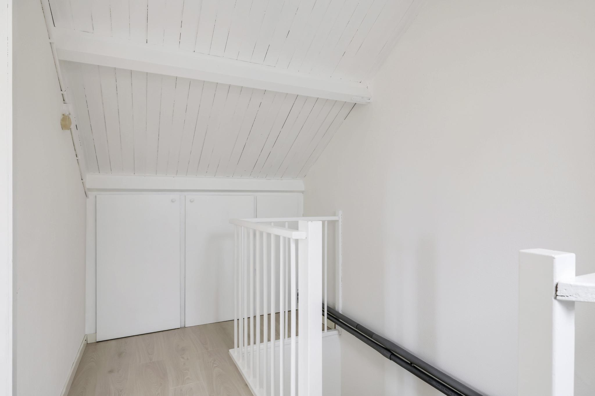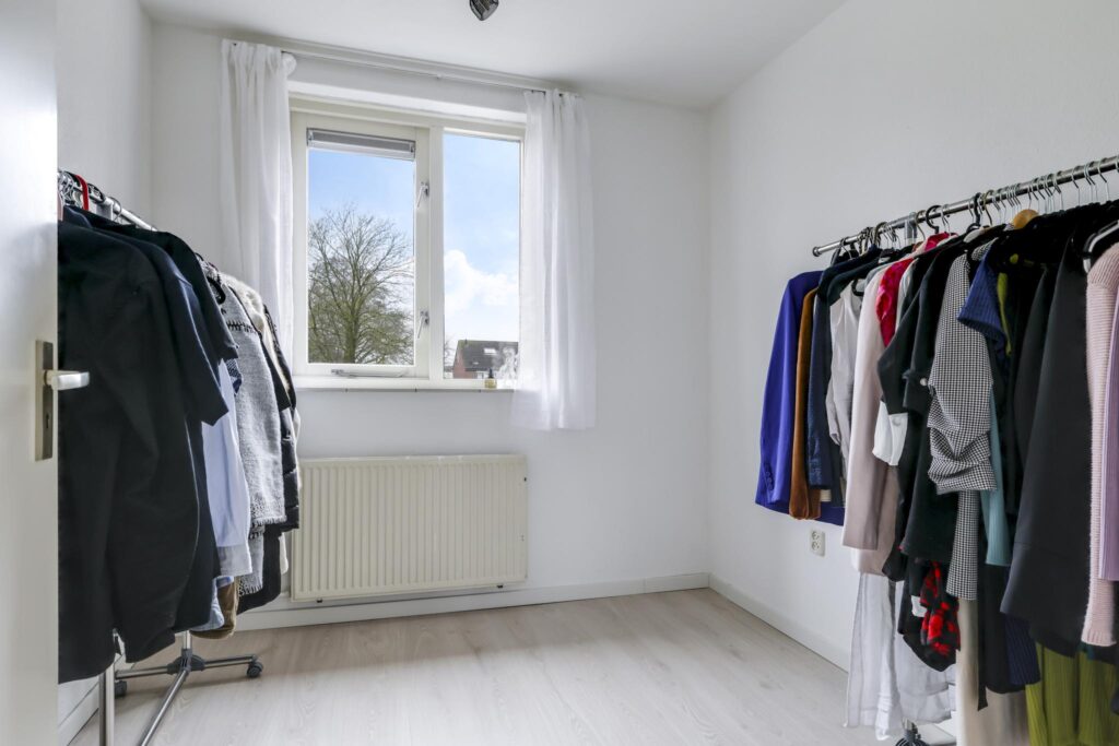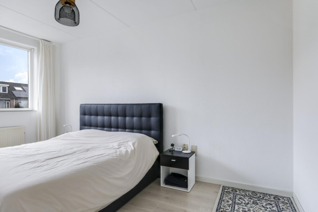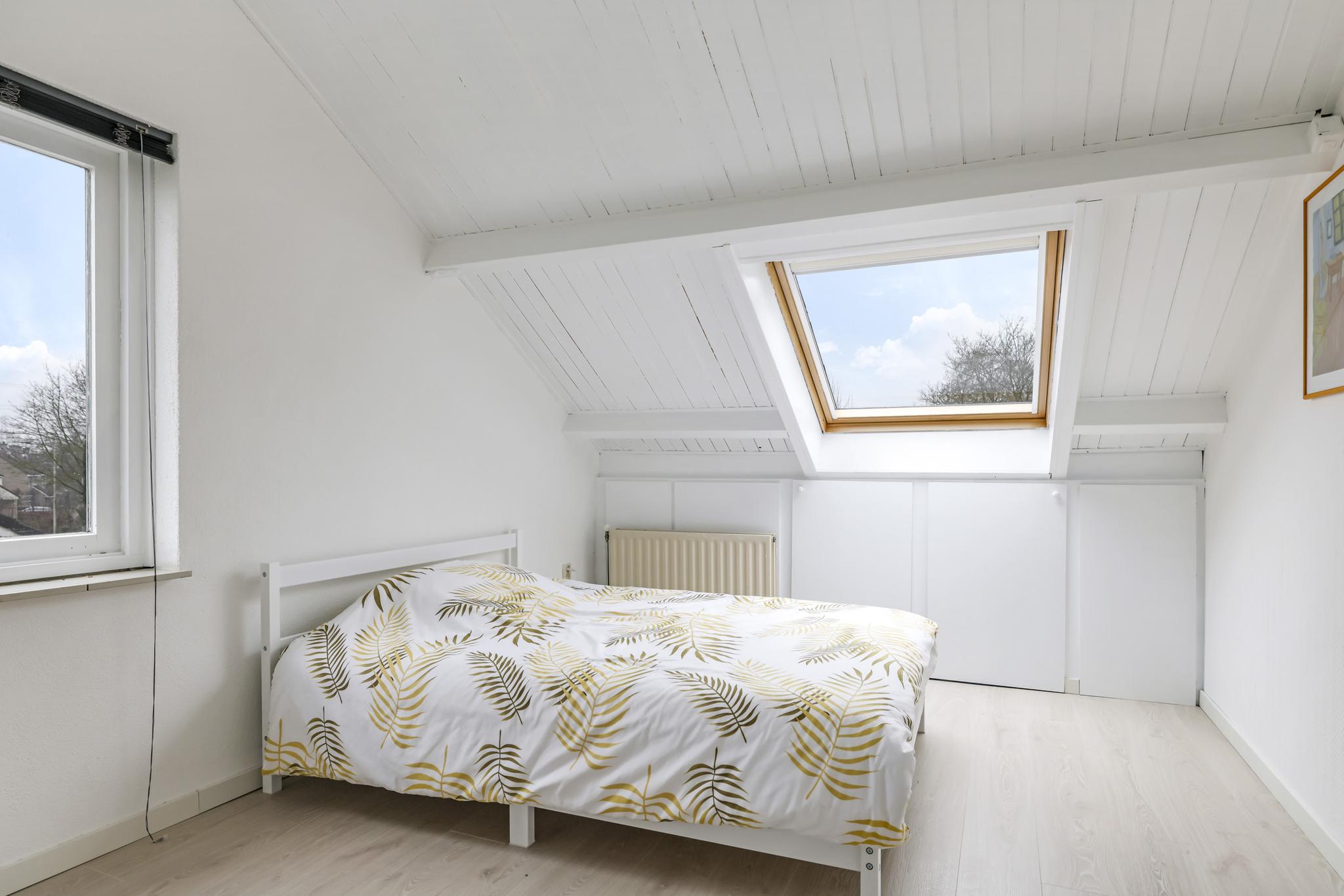 Via de vaste trap is de 2e verdieping te bereiken. Deze woonlaag is opgedeeld in een voorzolder en een 4e slaapkamer. De slaapkamer is ca. 12m² groot, doordat dit gemeten is vanaf 1,5m hoogte, is de ruimte in werkelijkheid nog groter. Onder de schuine kanten zijn knieschotten geplaatst waardoor je veel spullen uit het zicht kunt opbergen. De kamer heeft een zijgevelraam en een groot dakraam. De voorzolder biedt veel opbergmogelijkheden. Ook zijn hier de witgoedaansluitingen en de opstelling van de cv-ketel terug te vinden. Ook hier zijn knieschotten en een dakraam geplaatst.