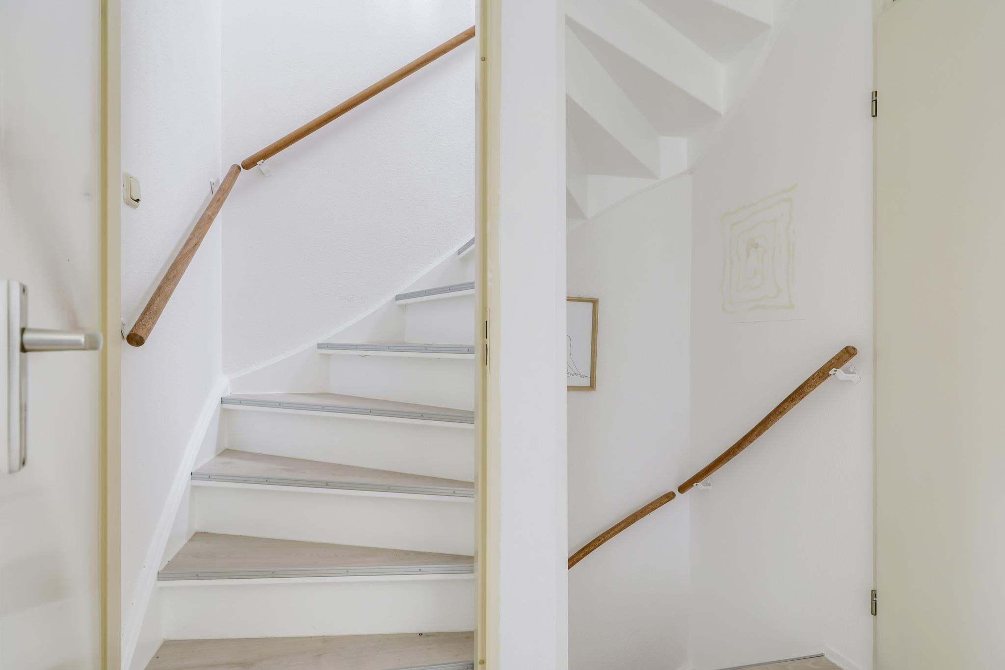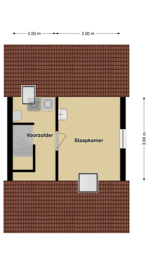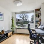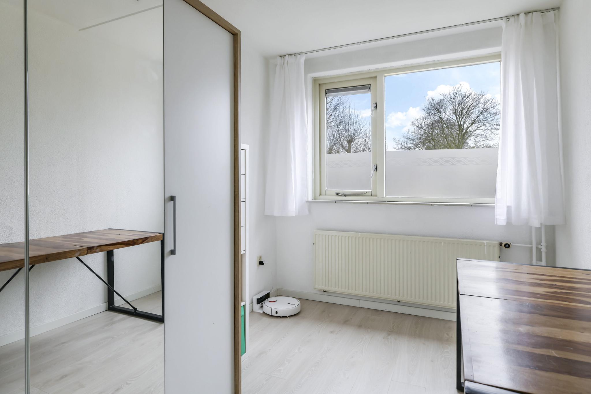 Via de vaste trap is de 2e verdieping te bereiken. Deze woonlaag is opgedeeld in een voorzolder en een 4e slaapkamer. De slaapkamer is ca. 12m² groot, doordat dit gemeten is vanaf 1,5m hoogte, is de ruimte in werkelijkheid nog groter. Onder de schuine kanten zijn knieschotten geplaatst waardoor je veel spullen uit het zicht kunt opbergen. De kamer heeft een zijgevelraam en een groot dakraam. De voorzolder biedt veel opbergmogelijkheden. Ook zijn hier de witgoedaansluitingen en de opstelling van de cv-ketel terug te vinden. Ook hier zijn knieschotten en een dakraam geplaatst.