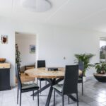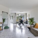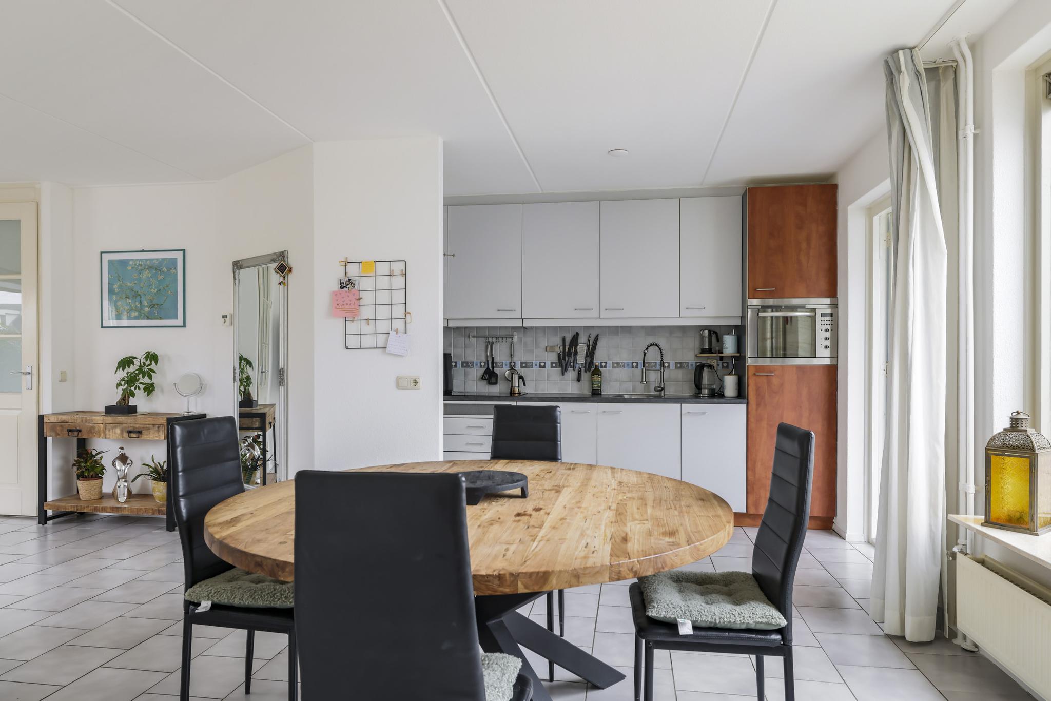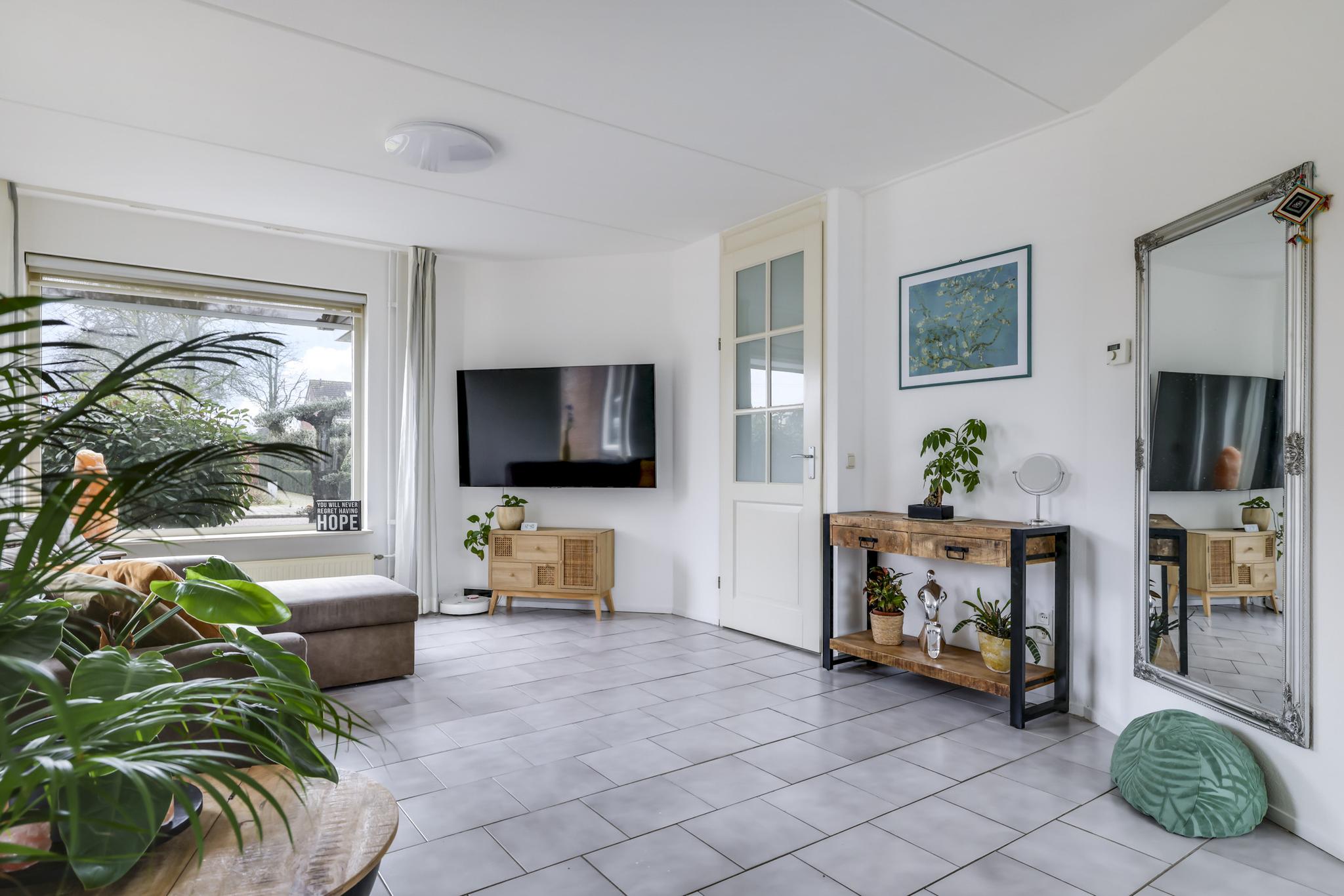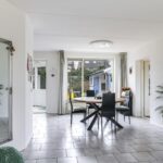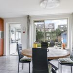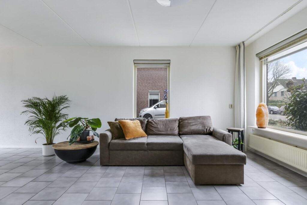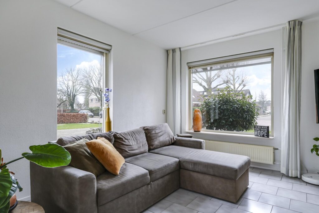 Deze woning heeft een klassieke doorzon-woonkamer met grote raampartijen waaronder in de zijgevel. Hierdoor is het altijd licht in de woonkamer wat voor een prettige woonsfeer zorgt. De kamer is goed in te richten met een grote hoekbank en een 6-persoons eettafel. Op de vloer liggen plavuizen welke aangenaam aanvoelen door de aanwezige vloerverwarming.