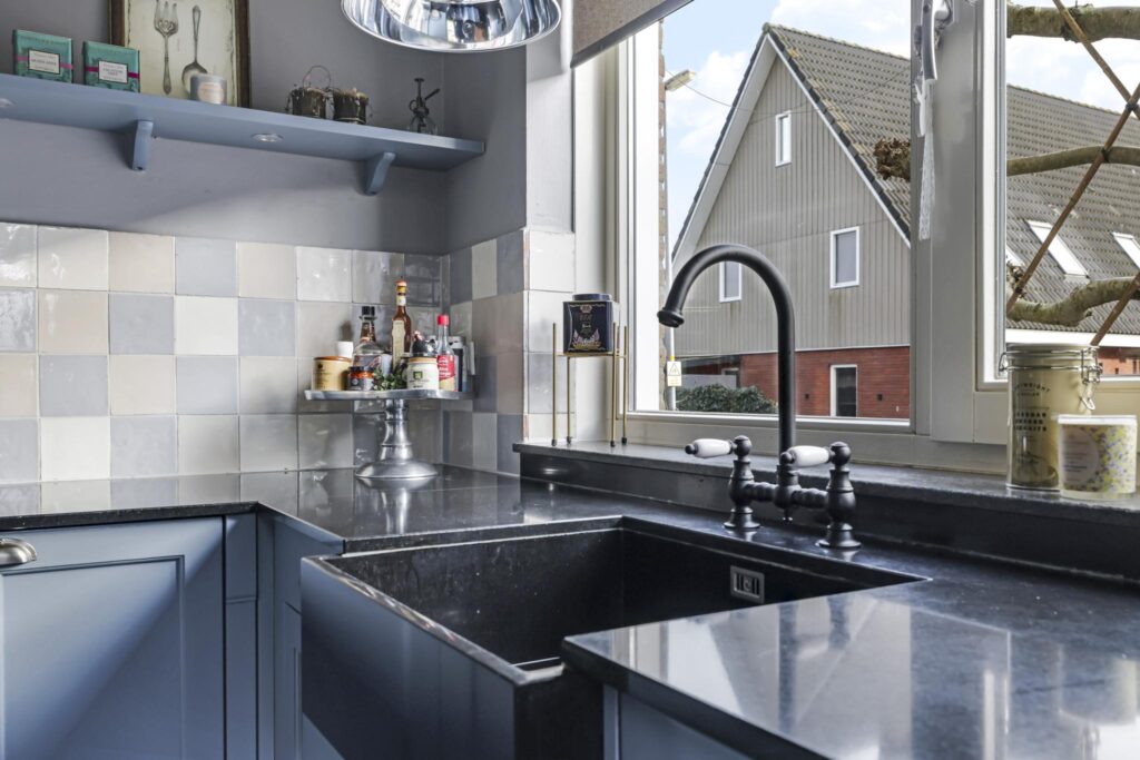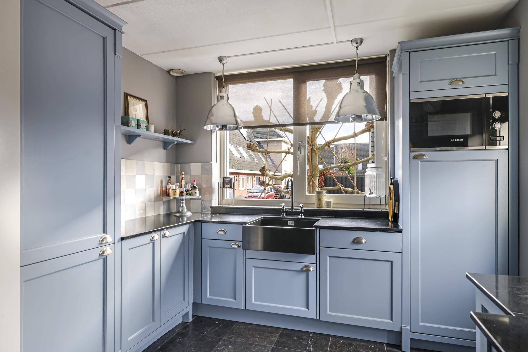 Van oorsprong was er naast de keuken een bijkeuken bedacht. Deze is komen te vervallen waardoor er meer leefruimte met daarbij een extra eethoek is ontstaan. Vanuit de keuken is tevens de voortuin (rolstoel)toegankelijk.