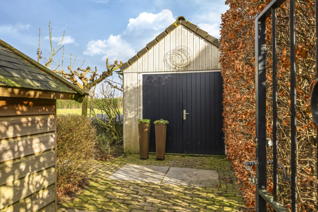 Grote garage met dubbele deuren en zadeldak