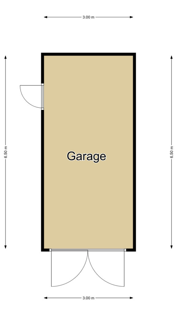 Bij een grote gezinswoning hoort ook een goede stallingsruimte. Vanaf de straat valt het bijna niet op, maar de woning heeft wel degelijk een grote garage. Overigens is deze in de huidige aanleg niet toegankelijk voor een auto omdat er een beukenhaag en een degelijke poort is geplaatst. Wel kun je in de garage meerdere fietsen en/of een motor stallen. Aan ruimte is er geen gebrek aangezien de garage net even iets langer is dan gemiddeld (6,5 meter lang) en een pannengedekt zadeldak met een zoldervliering heeft. Dubbele deuren aan de voorzijde alsmede een loopdeur aan de zijkant maken deze garage goed toegankelijk. Indien gewenst is de garage altijd weer voor een auto toegankelijk te maken door de poort en beukenhaag te verwijderen.