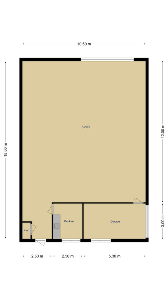 Loods is geïsoleerd en v.v. overheaddeuren en krachtstroom
