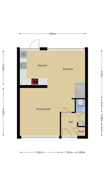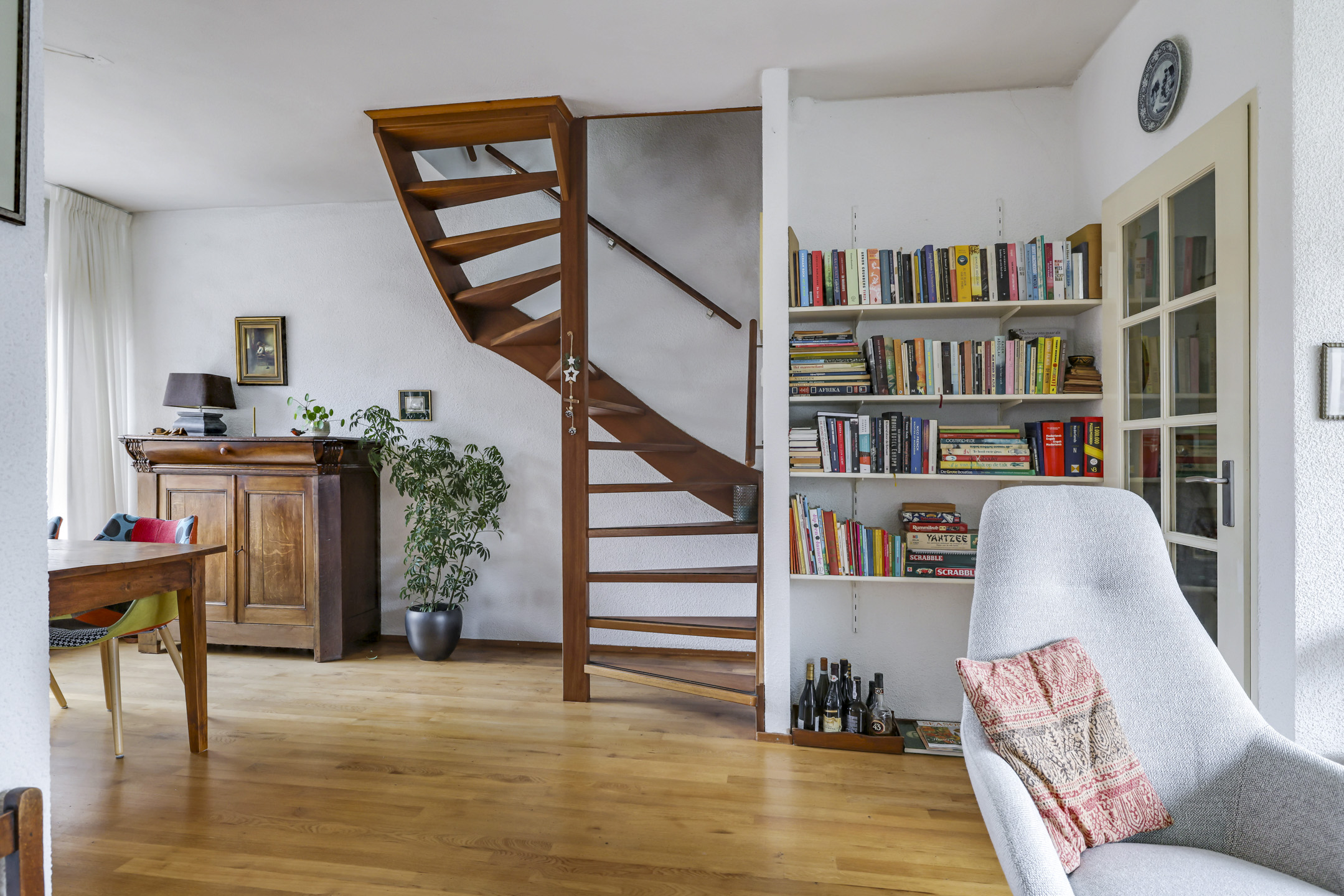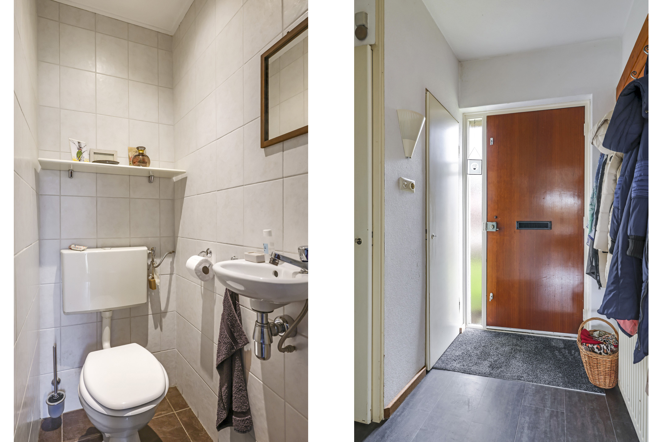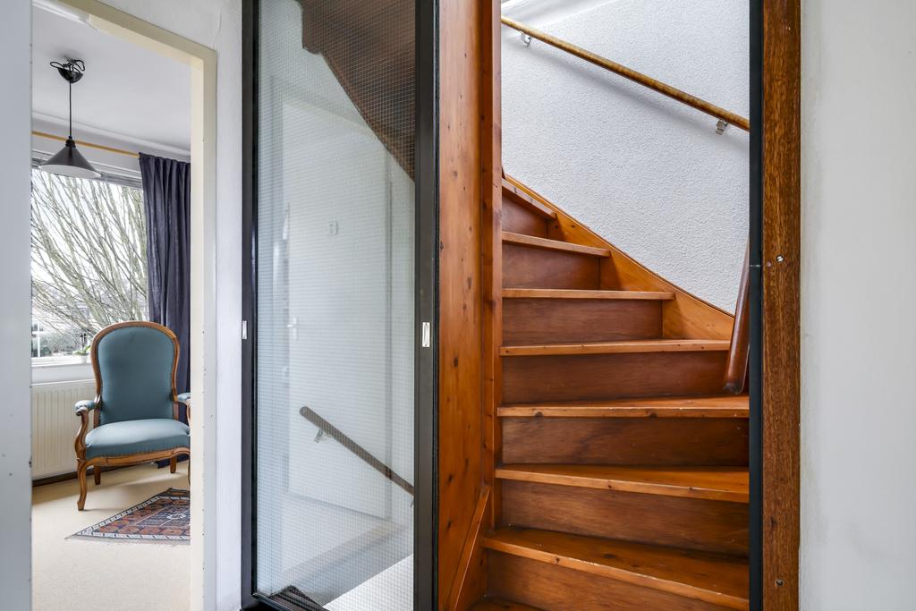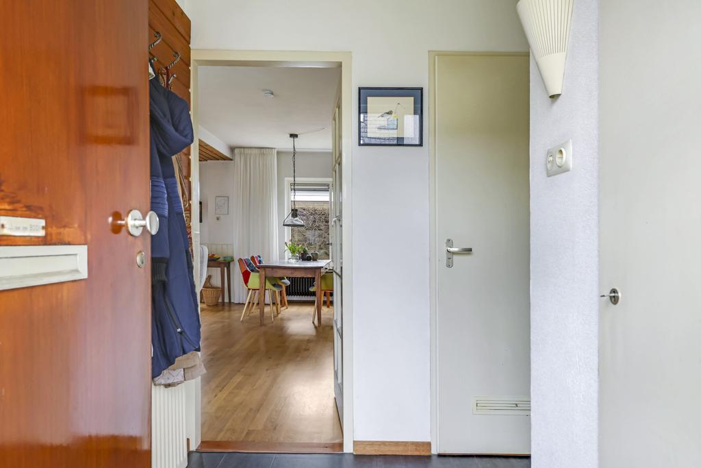 In de hal is nog een vaste kast aanwezig welke een goede vervanging is van de gebruikelijke trapkast. Hier kan je bijvoorbeeld de voorraad of een stofzuiger kwijt.