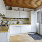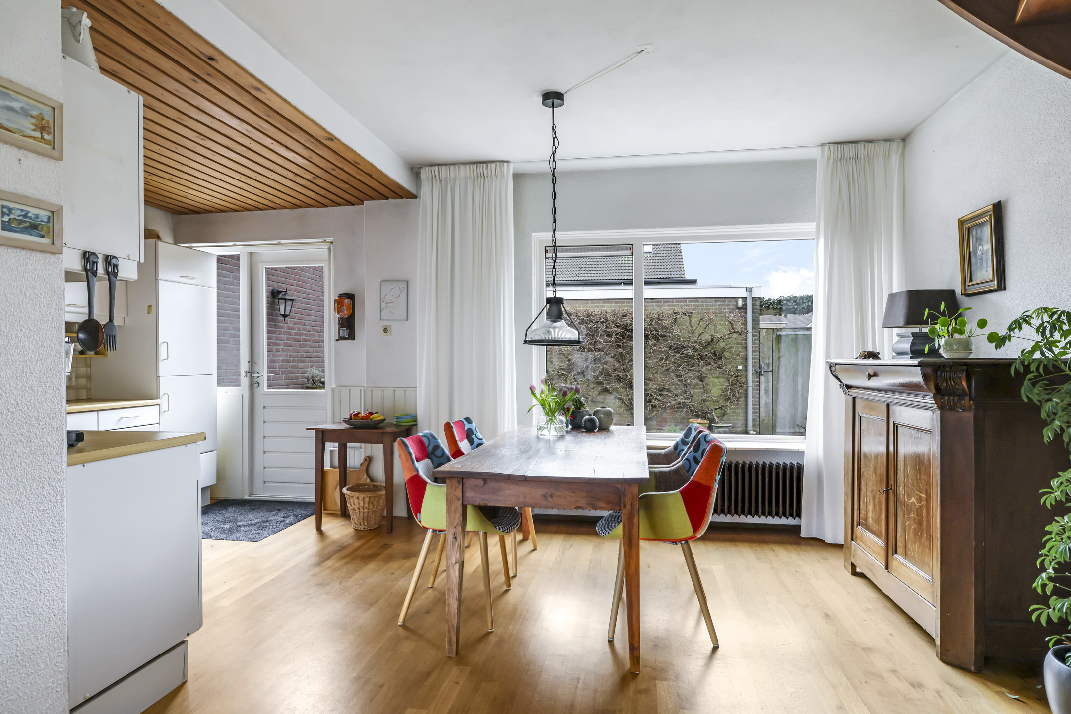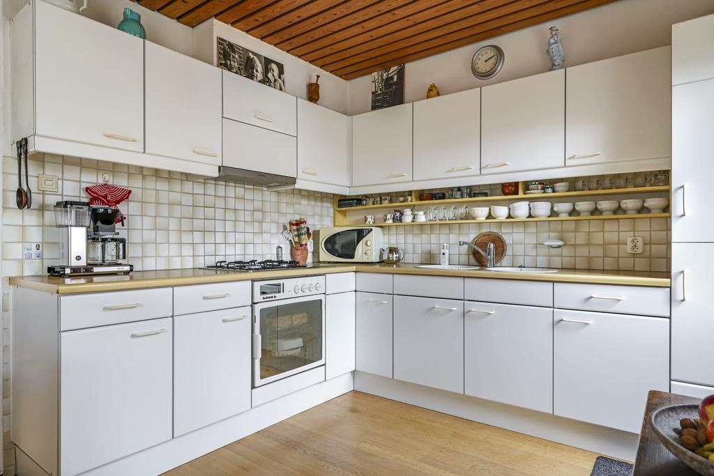 Wanneer je vanuit de woonkamer naar achteren loopt en om het hoekje kijkt, dan word je verrast door een ruim opgezette keuken. De keuken is in hoekopstelling geplaatst en voorzien van lekker veel werkruimte. Bovenkasten zorgen dat er ook aan opbergruimte geen gebrek is. Mocht je een andere keuken plaatsen, dan is deze ruimte ook geschikt voor een (schier)eiland waardoor je eindeloos veel opties hebt.