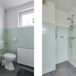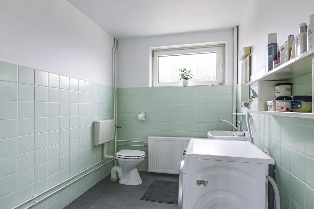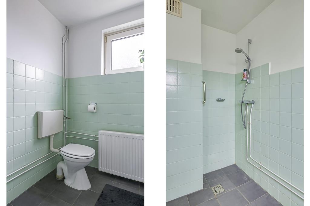 De badkamer van deze woning is verrassend ruim. De huidige inrichting bestaat uit een inloopdouche, een 2e toilet en een wastafel. Ook is hier een witgoedaansluiting aanwezig, echter is deze ook eenvoudig op de zolder te plaatsen waardoor je de wasmachine niet in de badkamer hoeft te plaatsen. Mocht je de badkamer anders indelen dan zou je hier zelfs nog een ligbad kwijt kunnen. Een hooggeplaatst raam zorgt voor de nodige lichtinval en een mogelijkheid tot ventileren.