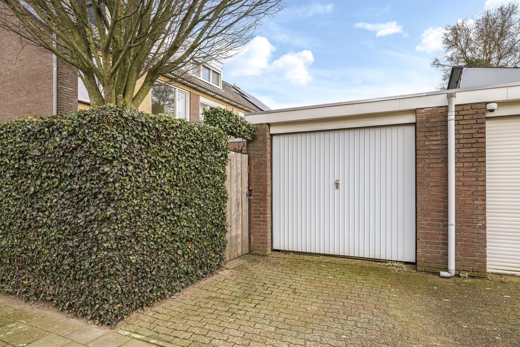 Een van de grootste pluspunten van deze woning is toch wel de garage. Deze stenen garage staat achter in de tuin waardoor deze ook vanuit de tuin toegankelijk is. De garage is voorzien van elektra. Aan de opritzijde biedt een stalen kanteldeur toegang tot de garage.