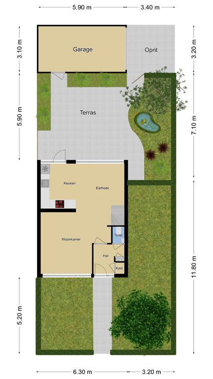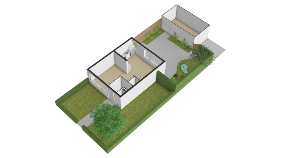 Ruim 3 meter extra brede tuin door hoekligging