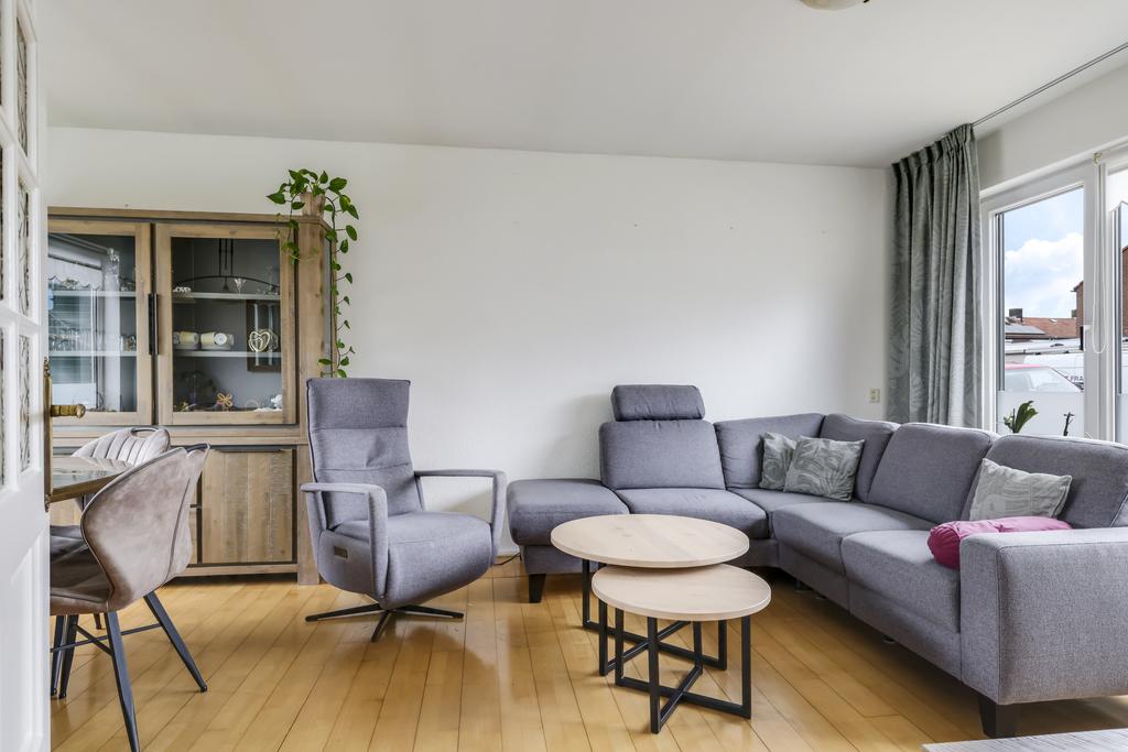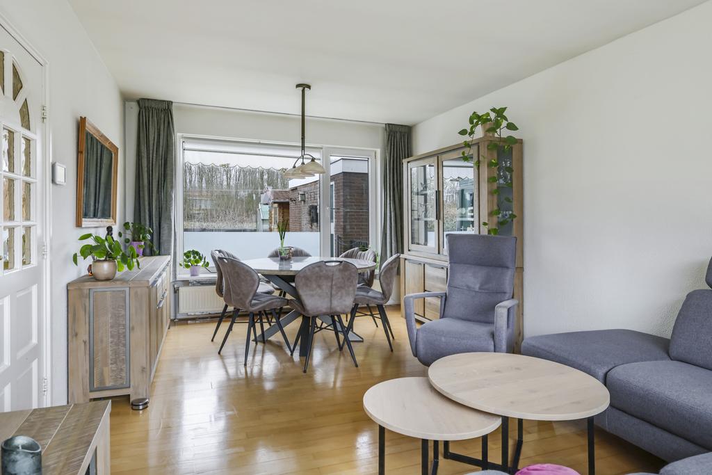 De woonkamer betreft een klassieke doorzonwoonkamer met zowel in de voor- als achtergevel een groot raam met veel lichtinval. Je hebt hier voldoende ruimte voor een lekkere hoekbank een 6-persoons eettafel. Noemenswaardig is de ‘vrijheid’ in de woonkamer doordat er nauwelijks tot geen inkijk is. Aan de voorzijde kijk je niet bij andere woningen naar binnen (en andersom) en aan de achterzijde geniet je de vrijheid van de bosrand van Hemmen. Het raam aan de voorzijde (zuiden) is voorzien van een rolluik waardoor de zon goed te weren is.