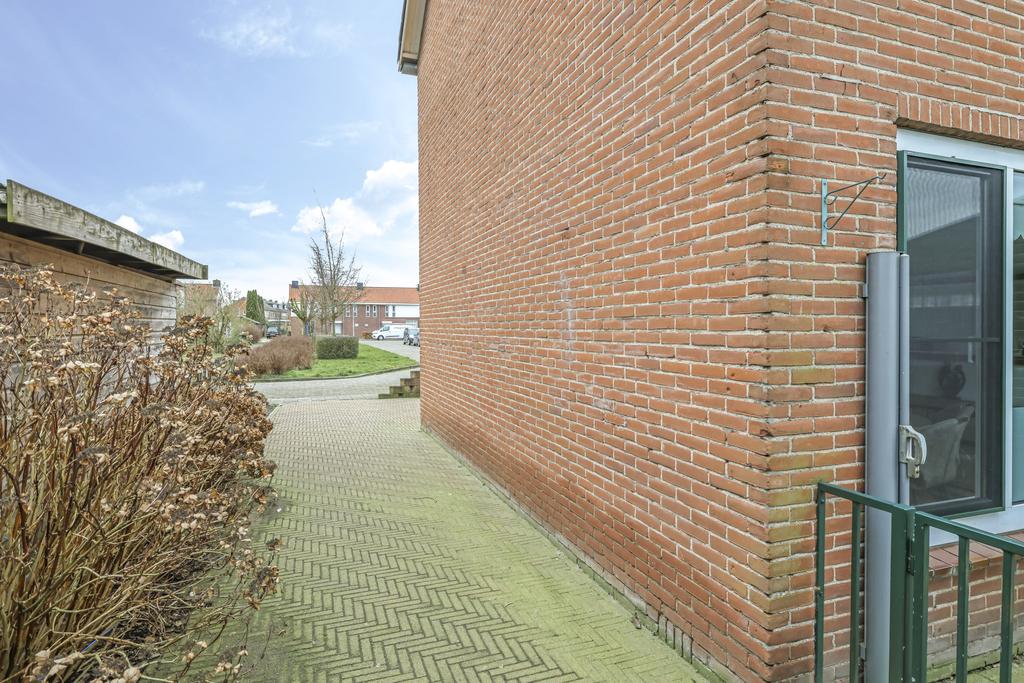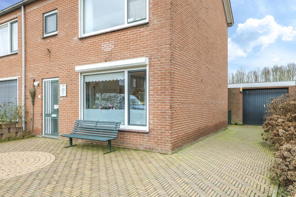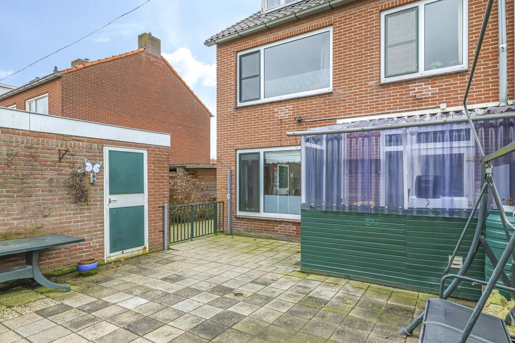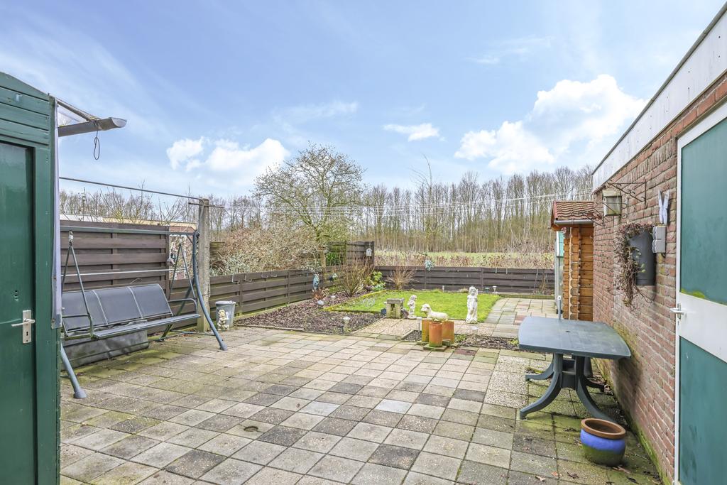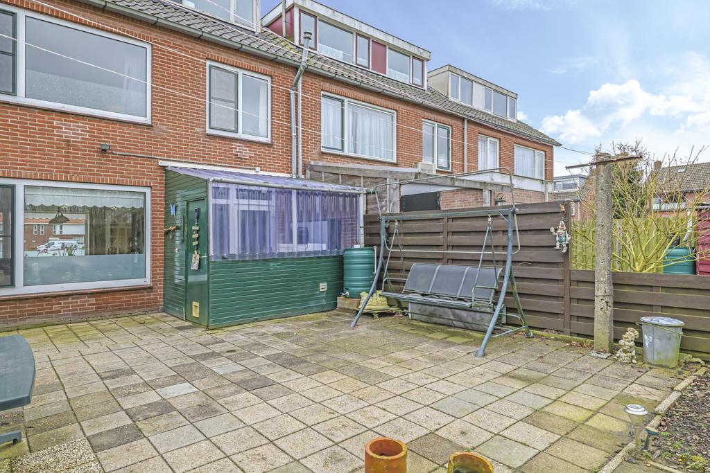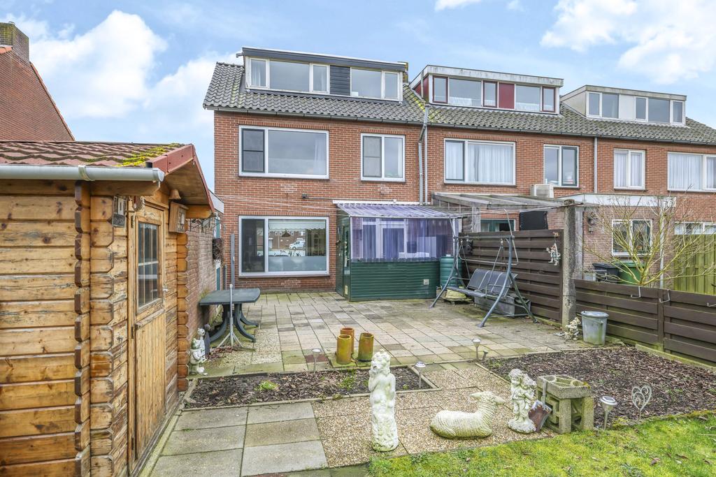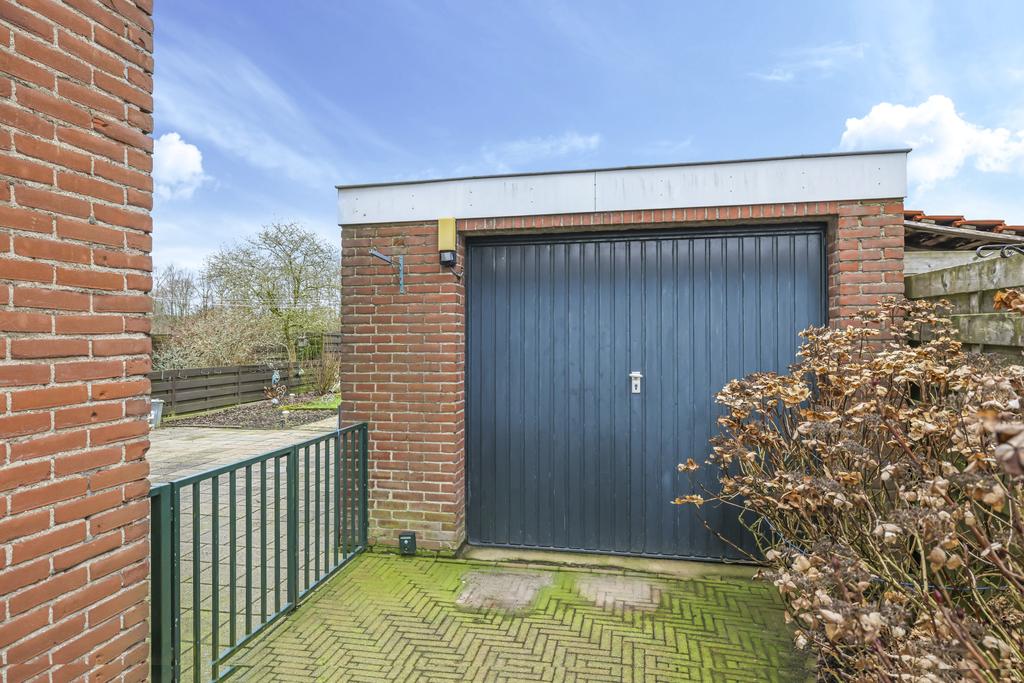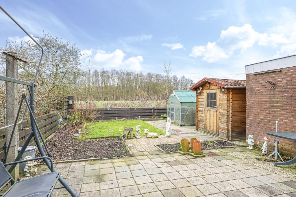 Eén van de grote pluspunten van deze gezinswoning is de achtertuin. Deze ligt niet alleen bijzonder vrij maar heeft ook een mooie diepte (ca. 13m) en is breder (ca. 10m) dan normaal vanwege de hoekligging. Doordat de tuin zo diep is, geniet je er de gehele dag van de zon ondanks de ligging op het noorden. In de tuin staan diverse bijgebouwen, namelijk een stenen garage, een houten schuur en een hobbykas. Houd je van tuinieren dan kan je hier zeker je hart ophalen. Aan opbergruimte geen gebrek en in de hobbykas kweek jij eenvoudig je eigen groente en fruit. Aan de zijkant is de tuin toegankelijk middels een poort welke tussen de woning en de garage in is geplaatst.