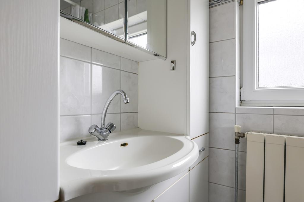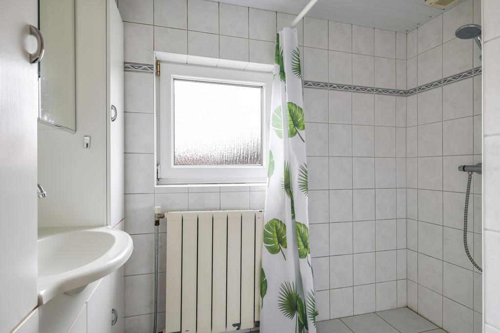 De badkamer is aan de voorzijde van de woning gelegen. De ruimte is niet groot waardoor deze ook is ingedeeld met een douche en een wastafelmeubel. Mocht je meer ruimte willen in de badkamer dan zou je een stukje van de slaapkamer erbij kunnen betrekken. Een hooggeplaatst raam zorgt voor lichtinval en een fijne ventilatiemogelijkheid.