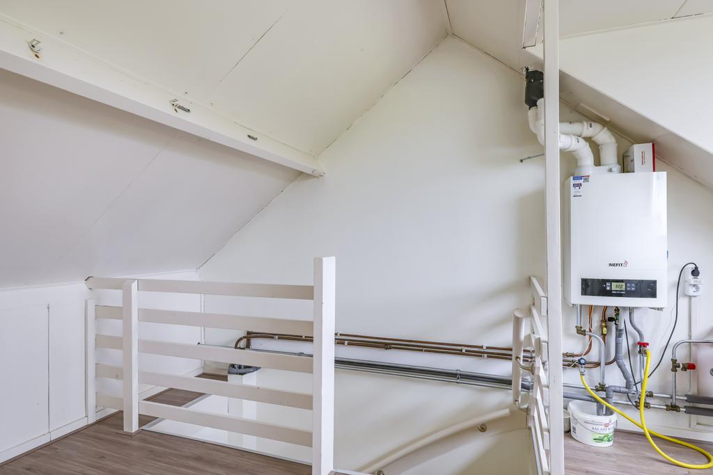 Via een vaste trap is de 2e verdieping te bereiken. De trapopgang is af te sluiten middels een deur waardoor je geen warmteverlies naar boven hebt wanneer je de ruimte niet veel gebruikt. Deze verdieping is een volwaardige woonlaag met een goede stahoogte in de nok. Aan de achterzijde is een brede dakkapel geplaatst waardoor de ruimte ook nog aanzienlijk is vergroot. De woonlaag is opgedeeld in een voorzolder en een 4e slaapkamer (ca. 13m² groot). De slaapkamer is tevens voorzien van een kastenwand voor lekker veel opbergruimte. Ook vanuit deze slaapkamer geniet je van het panoramische uitzicht over landgoed Hemmen.