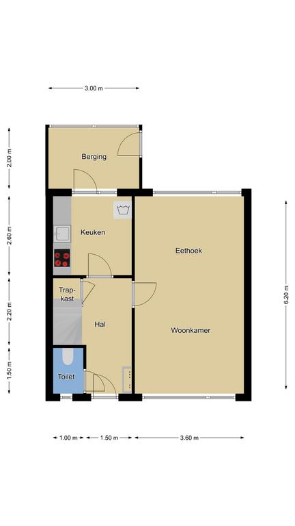 Hal/entree met toilet, meterkast, verdiepte trapkast en trapopgang