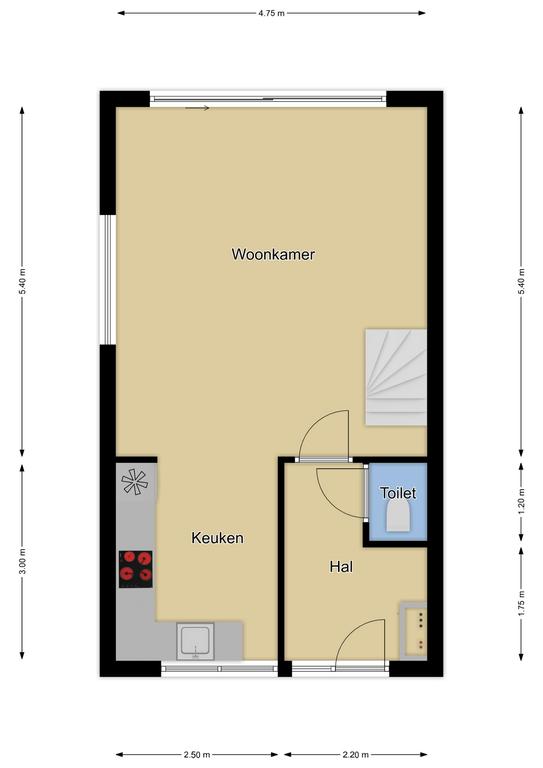 Ruime woonkamer met trapopgang naar de 1e verdieping