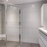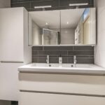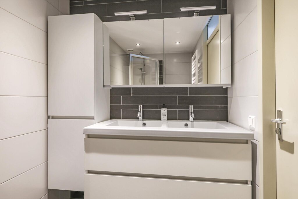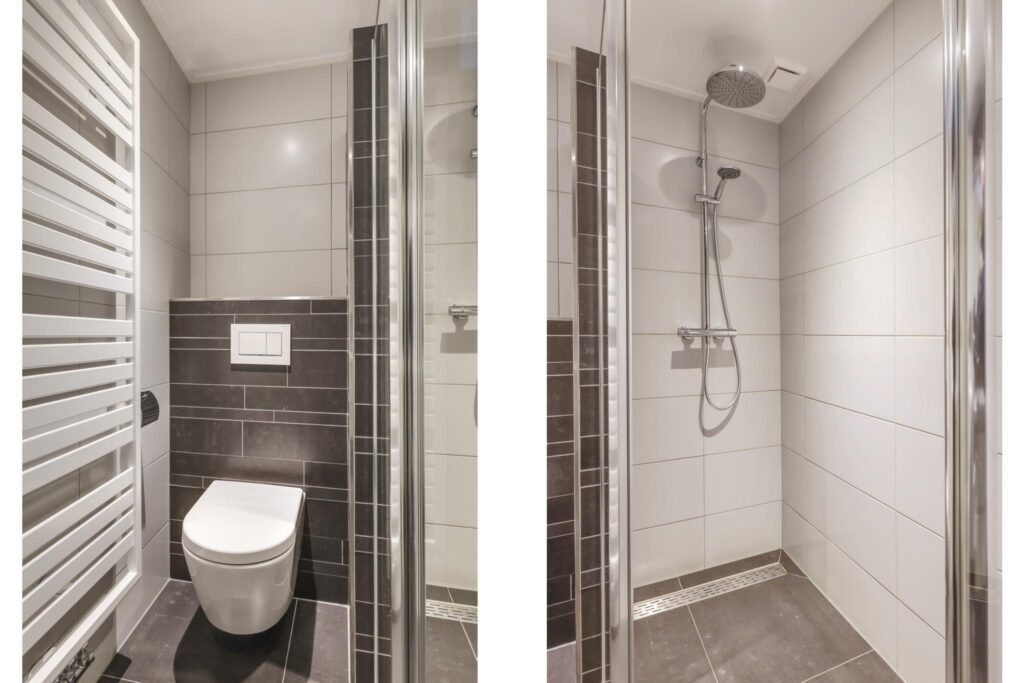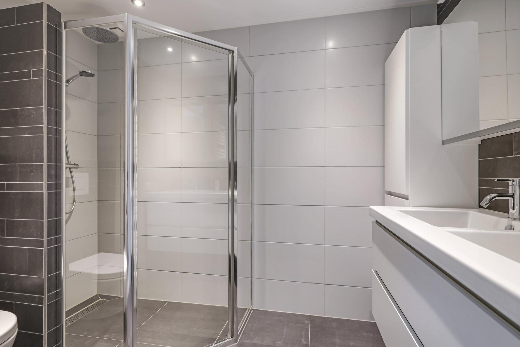 De badkamer is in 2019 vervangen en dat zie je terug in de trendy uitstraling met onder meer modern sanitair en groot formaat tegelwerk. De comfortabele inloopdouche is voorzien van een glaswand, een regendouche en handdouche. Het brede 2-persoons wastafelmeubel is voorzien van brede lades en een grote spiegelkast met verlichting. Een kolomkast ernaast zorgt voor extra opbergruimte ten behoeve van de toiletspullen. Ook is er een 2e (zwevend geplaatst) wandcloset aanwezig. Een handdoekradiator en een spanplafond met inbouwspots maken de badkamer compleet.