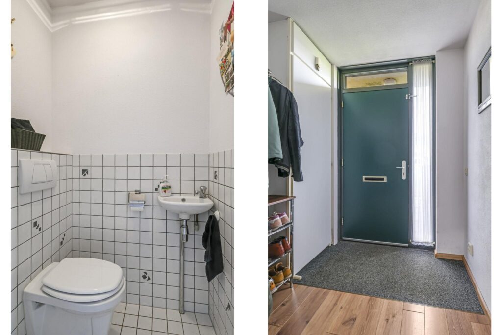 Hal/entree met meterkast, garderobenis, toilet met fonteintje en trapopgang