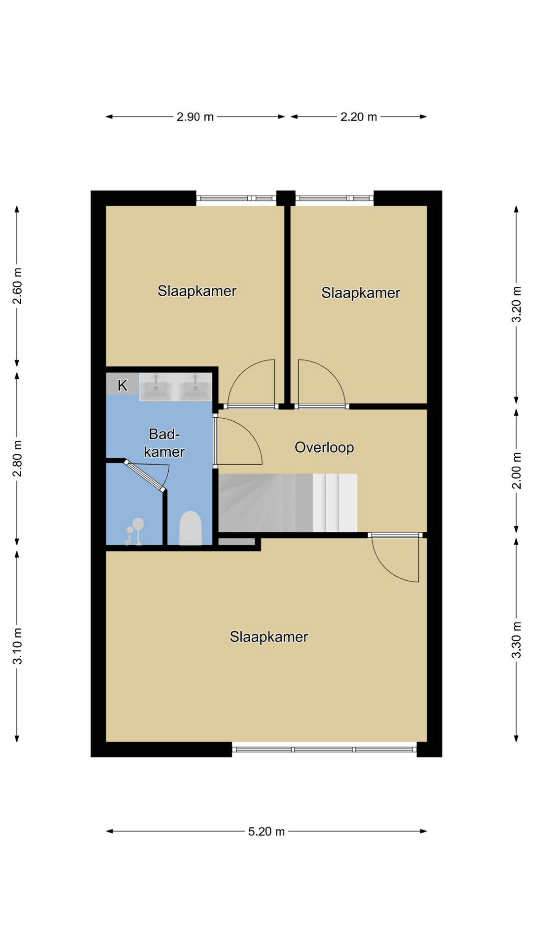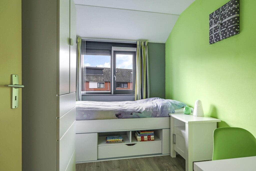 De 2 slaapkamers aan de achterzijde zijn volwaardige kinderkamers maar hier kun je natuurlijk ook prima een werkkamer creëren. Overigens zijn deze kamers voorzien van rolluiken waardoor ze 100% te verduisteren zijn.