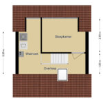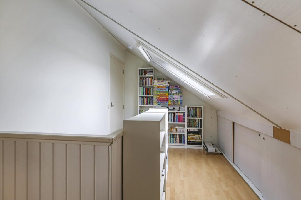 Knieschot opbergruimte onder de schuine dakvlakken.