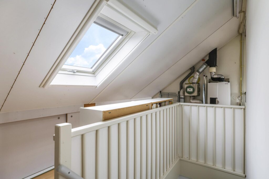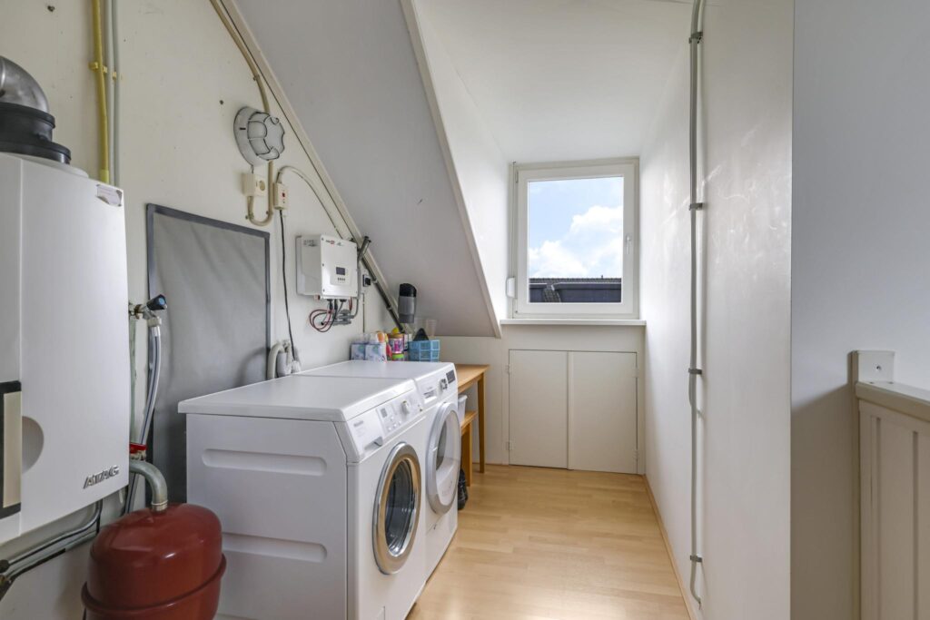 De wasruimte is voorzien van extra ruimte en lichtinval doordat de dakkapel hier doorloopt. Achter knieschot schuifpanelen tref je veel opbergruimte.