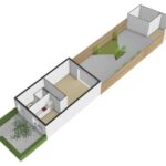 Via de brede schuifpui in de woonkamer loop je zo de achtertuin in. De woonkamer en tuin zijn daardoor op een zomerdag eenvoudig bij elkaar te betrekken. Daarbij is de tuin volledig op het zuiden gelegen waardoor je maximaal aantal zonuren geniet. Om die reden is er ook zonwering (een uitvalscherm) aan de achtergevel bevestigd welke elektrisch bedienbaar is.