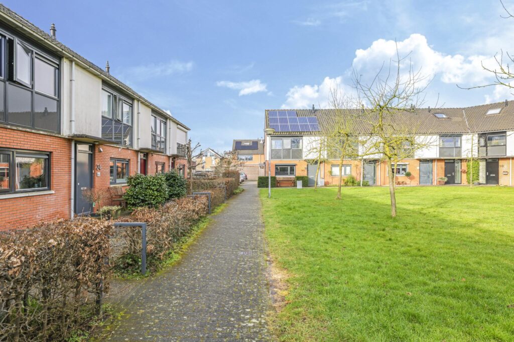 Deze woning is gelegen aan een rustig, kindvriendelijk en groen opgezet hofje met fruitbomen voor de deur. Hierdoor kijk je vanuit de keuken groen weg. Zowel de dorpskern (met winkels en horeca) alsmede het recreatie-/wandelgebied ‘De Hetersche Waarden’ liggen op loopafstand.