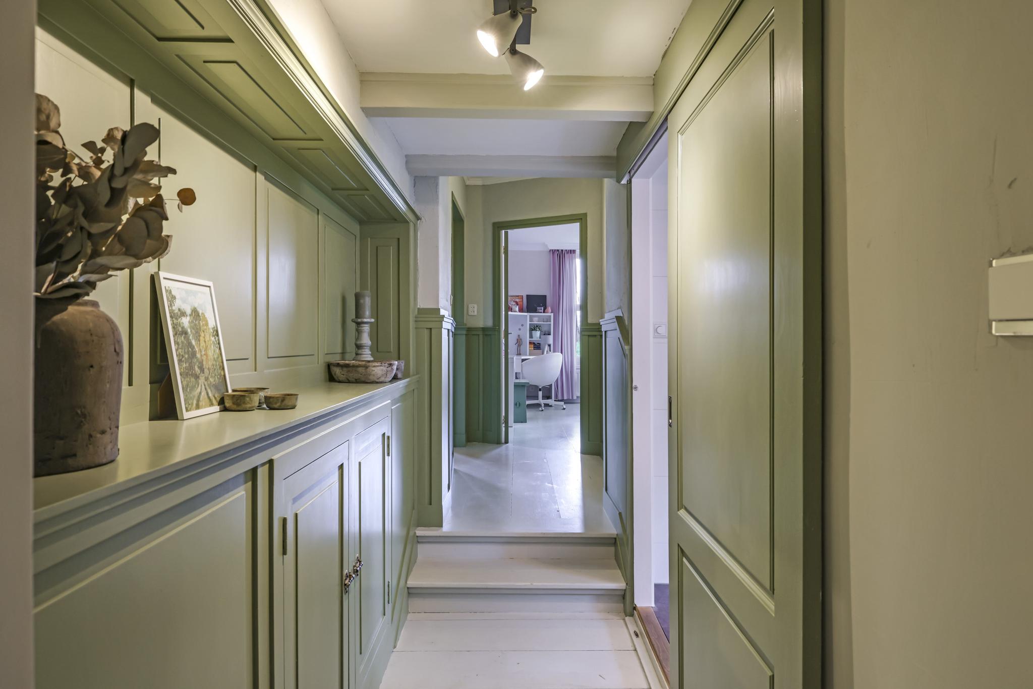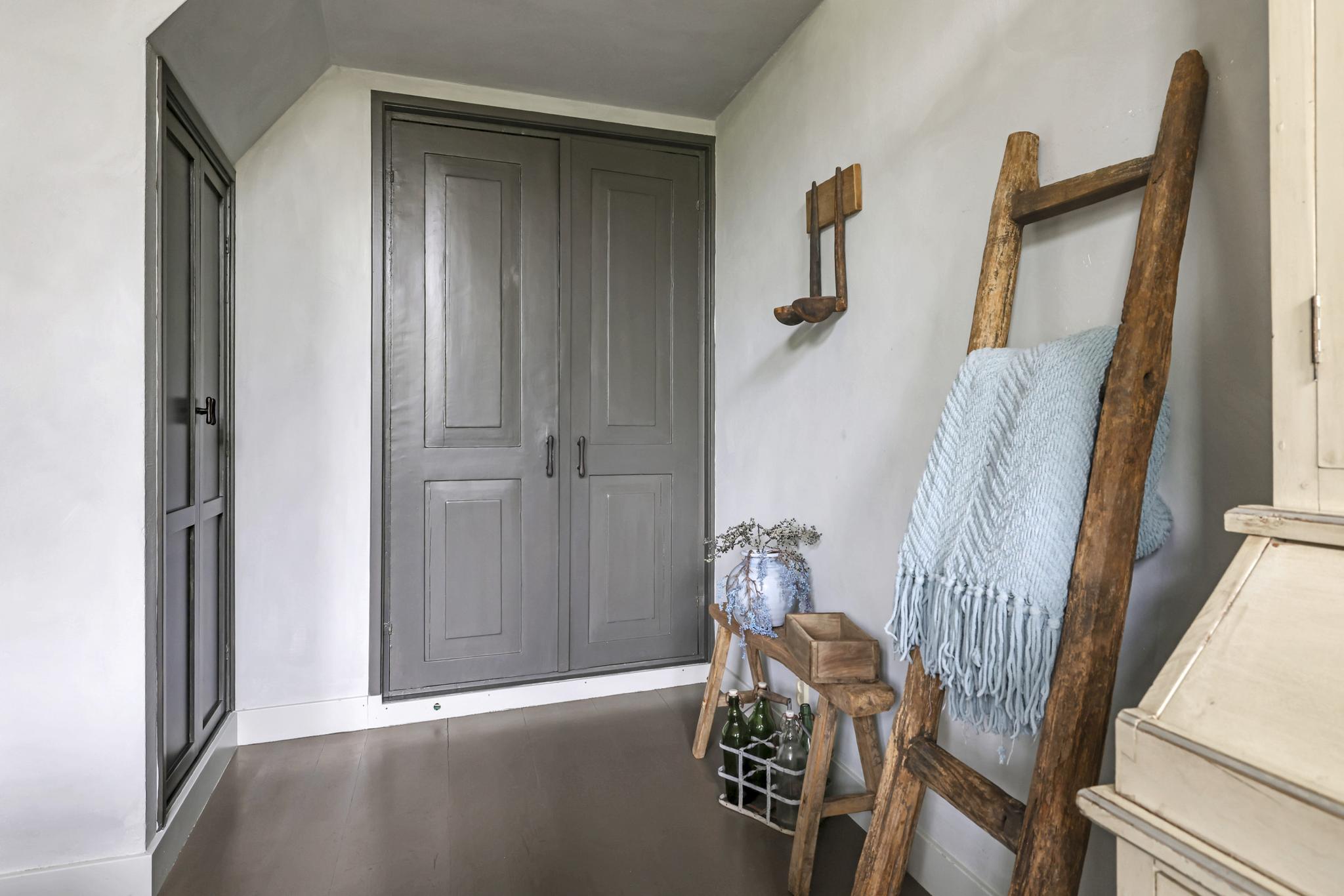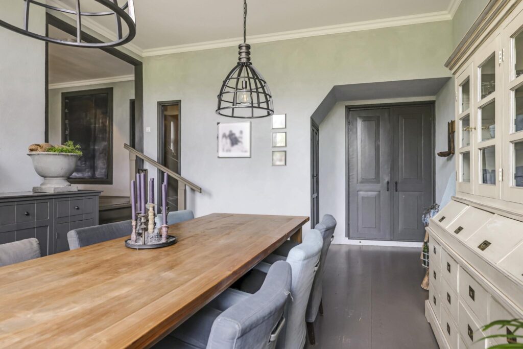 Een woonboerderij van meer dan 150 jaar oud die er nog zo fraai bij staat, komen we niet vaak tegen. En het bijzondere is: bij de renovatie en modernisering zijn veel authentieke details bewaard gebleven. Dit wordt al meteen duidelijk bij binnenkomst waarbij je binnen komt in een imposante hal met een hoog plafond, lambrisering en originele paneeldeuren. Er is onder meer toegang tot een kelder met stahoogte en er zijn meerdere inbouwkasten te vinden. De indeling is verrassend en speels met o.a. hoogteverschillen met trappetjes, doorkijkjes en hoekjes, opvallende raampartijen alsmede fraaie balkenplafonds die de landelijke woonsfeer versterken. Een prachtdetail zijn de binnenluiken die nog bij meerdere ramen aanwezig zijn.