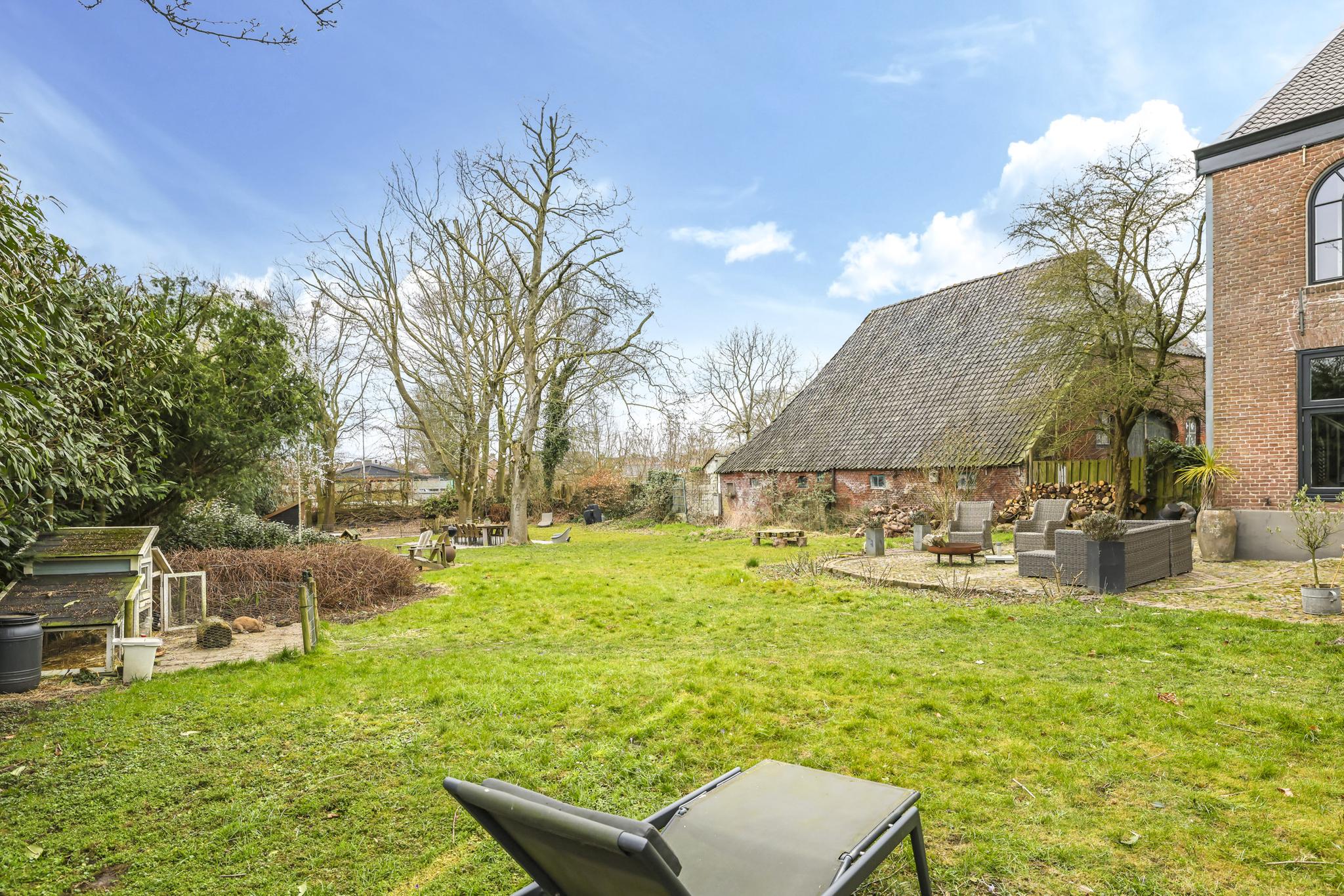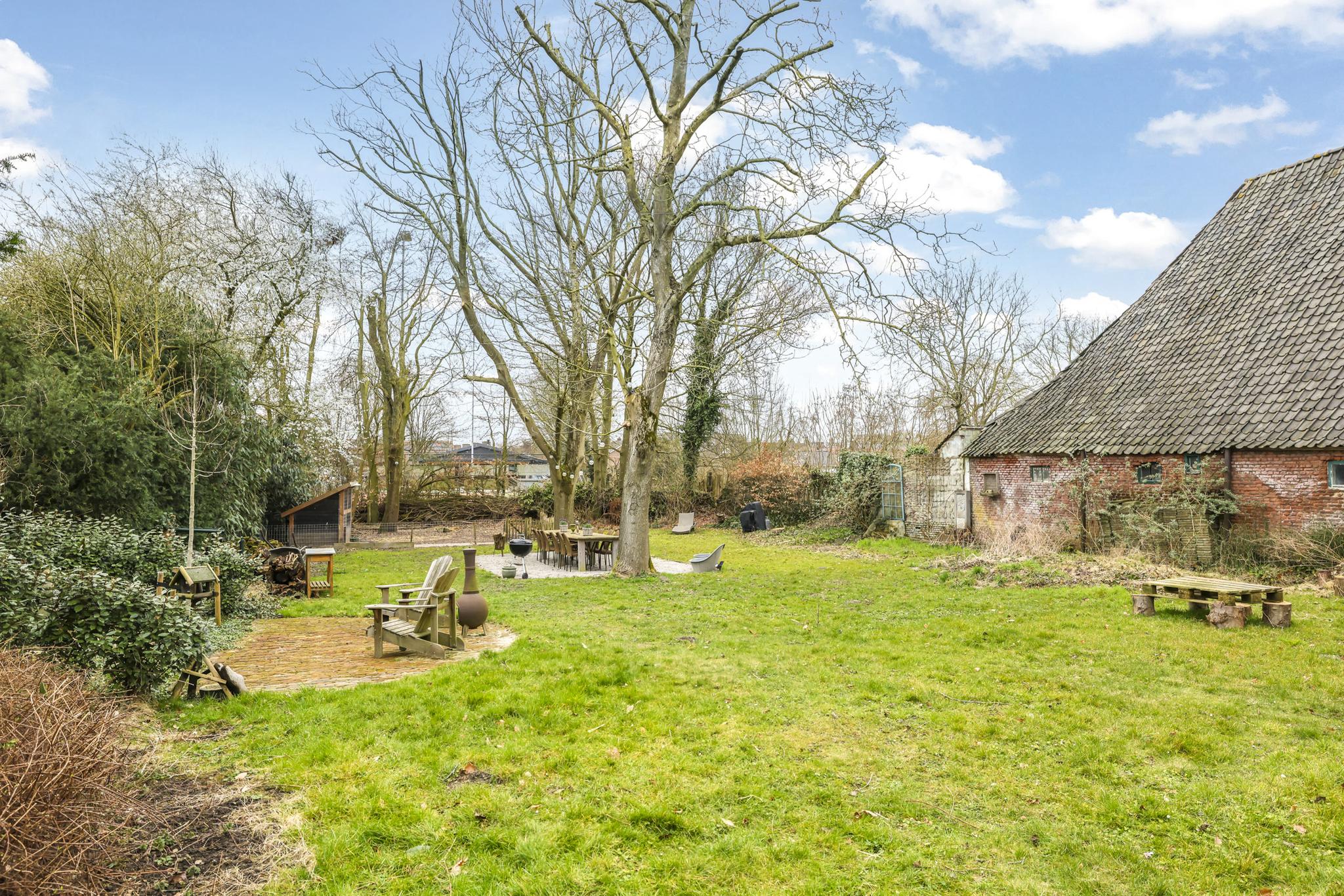 Loop je door naar achteren, dan komt je de rust en vrijheid tegemoet. Er zijn meerdere, zonnige terrassen aangelegd terwijl je wordt omgeven door bosschages, volwassen bomen en de oude schuur van de buurwoning. Heb je altijd al boerderijdieren aan huis willen hebben? Achterin de tuin hebben kleine varkentjes gelopen, maar je zou hier ook prima kippen kunnen houden.