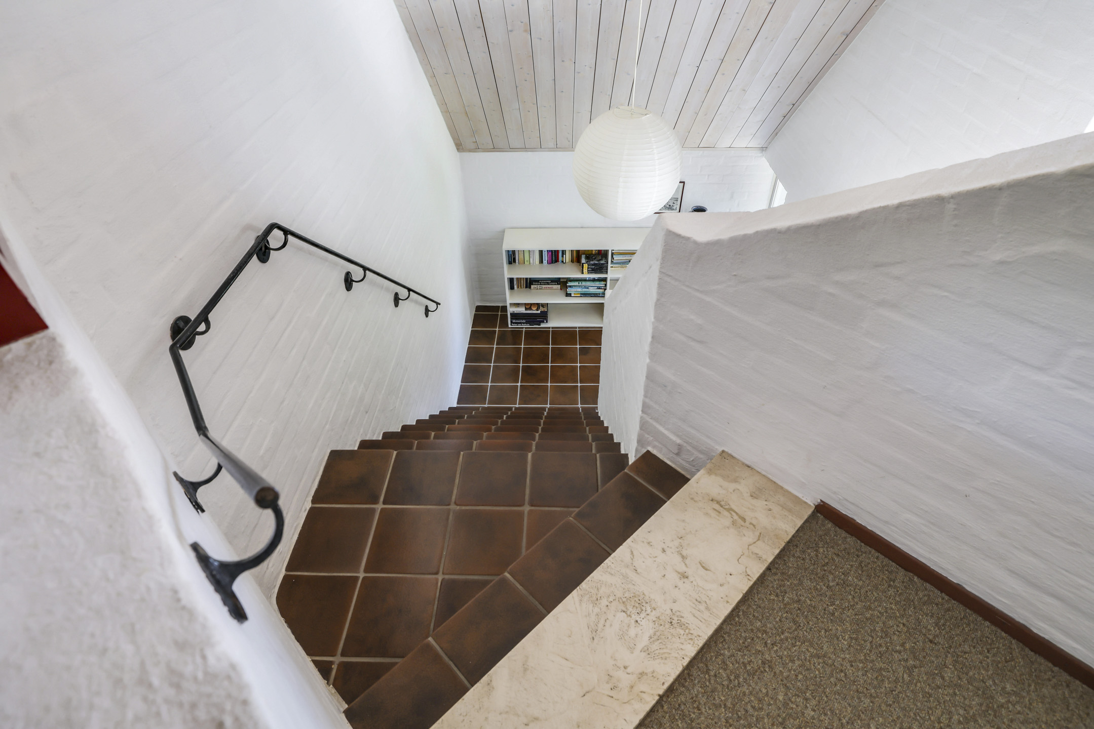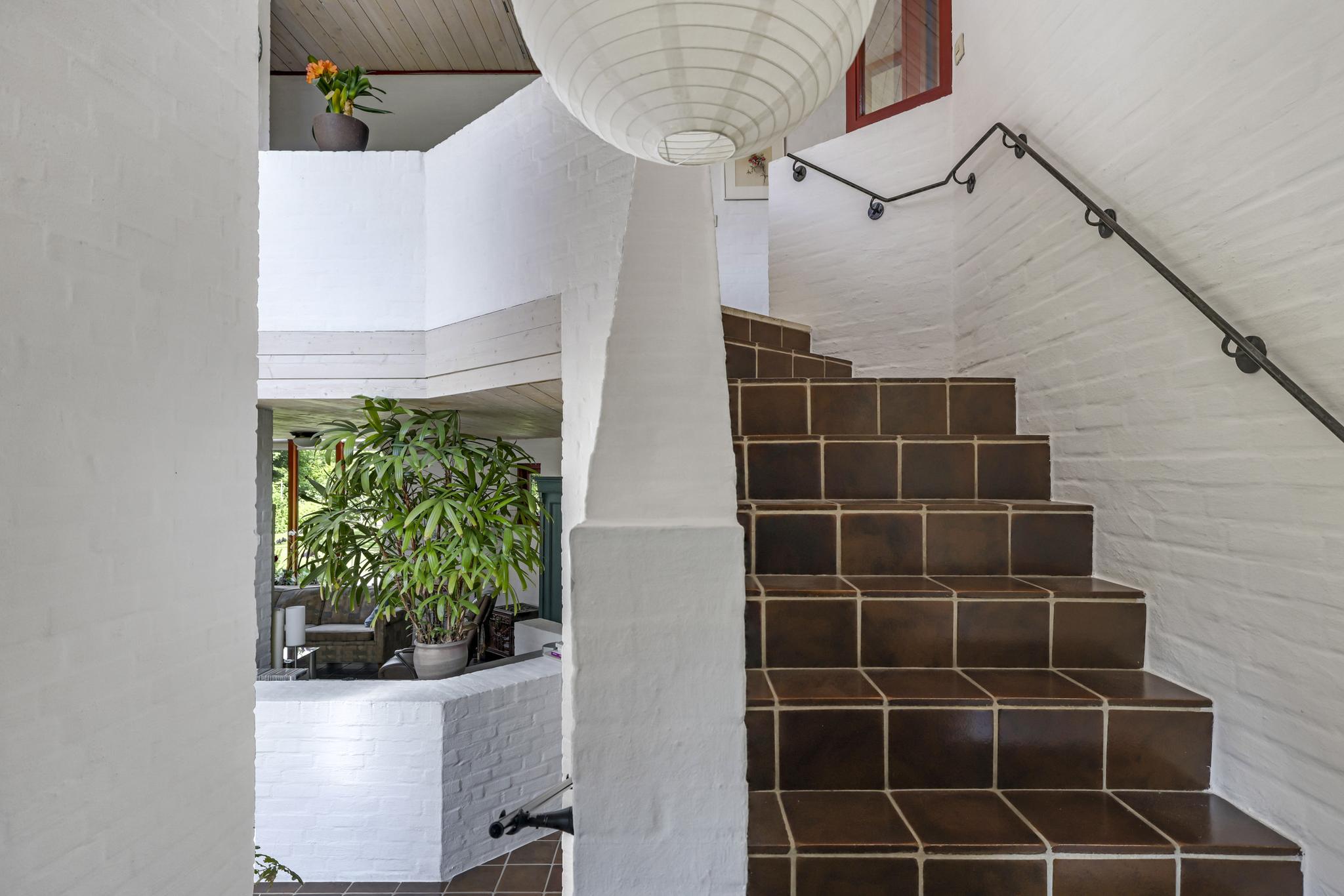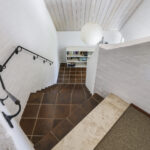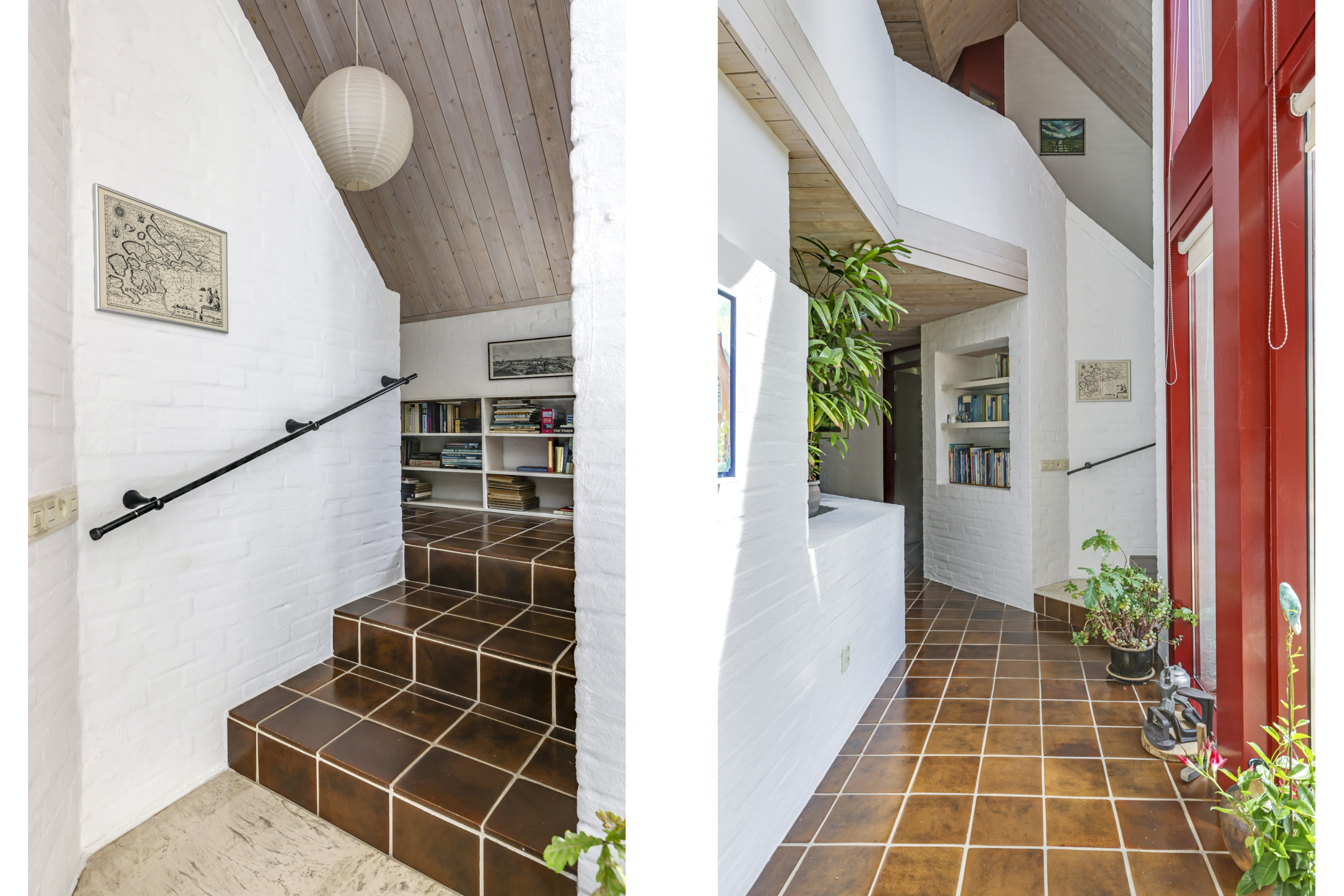 De trapopgang is al een beleving op zichzelf. Het is geen standaard trap aangezien deze in beton is uitgevoerd en halverwege een bordes heeft. Bovendien maakt het onderdeel uit van de vide waardoor je een enorm ruimtelijk gevoel ervaart. En doordat de trap is betegeld, heb je niet te maken met een krakende trap die je in de meeste woningen wel tegenkomt.