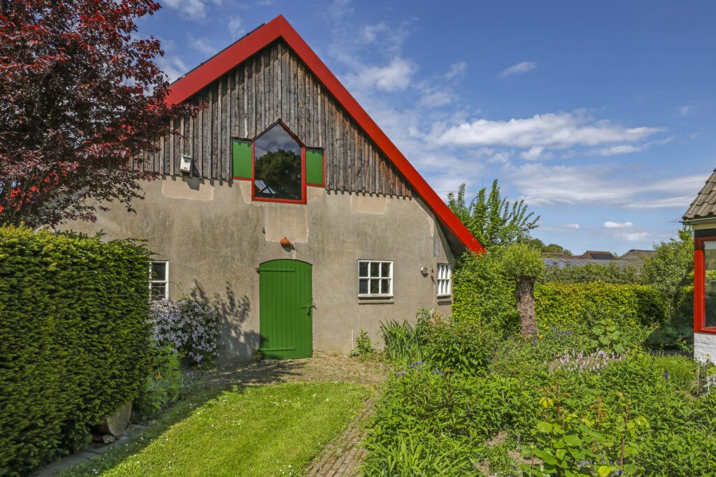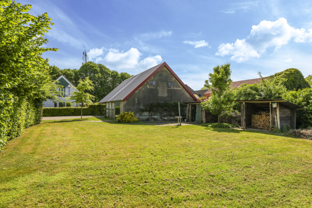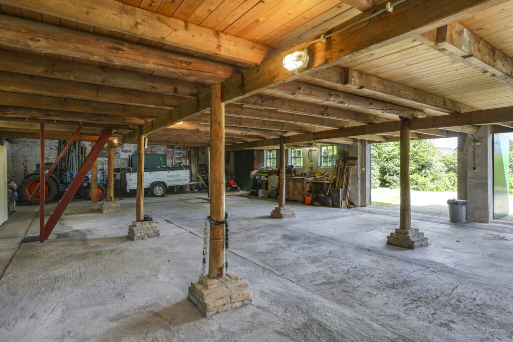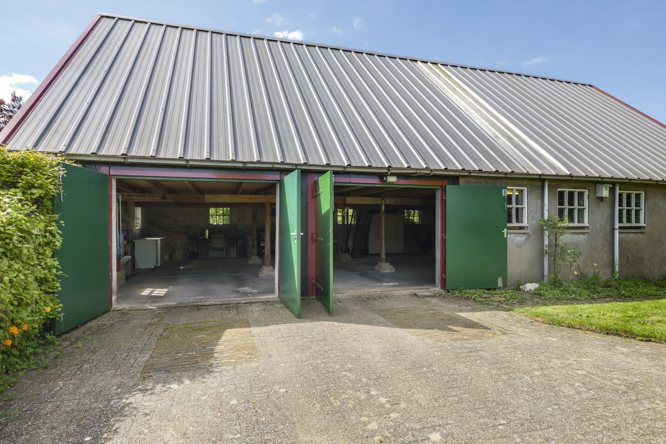 Aan het einde van de ‘oprijlaan’ staat er schuin achter de woning een bijzonder fraaie schuur / loods met een grondoppervlak van ca. 150m2 (!) groot. Het betreft de koeienstal die bij de voormalige woonboerderij hoorde en na verloop van tijd is gerenoveerd tot een degelijke schuur/loods met 3 garagedeuren waardoor je meerdere auto’s of andere voertuigen naar binnen kunt rijden.