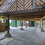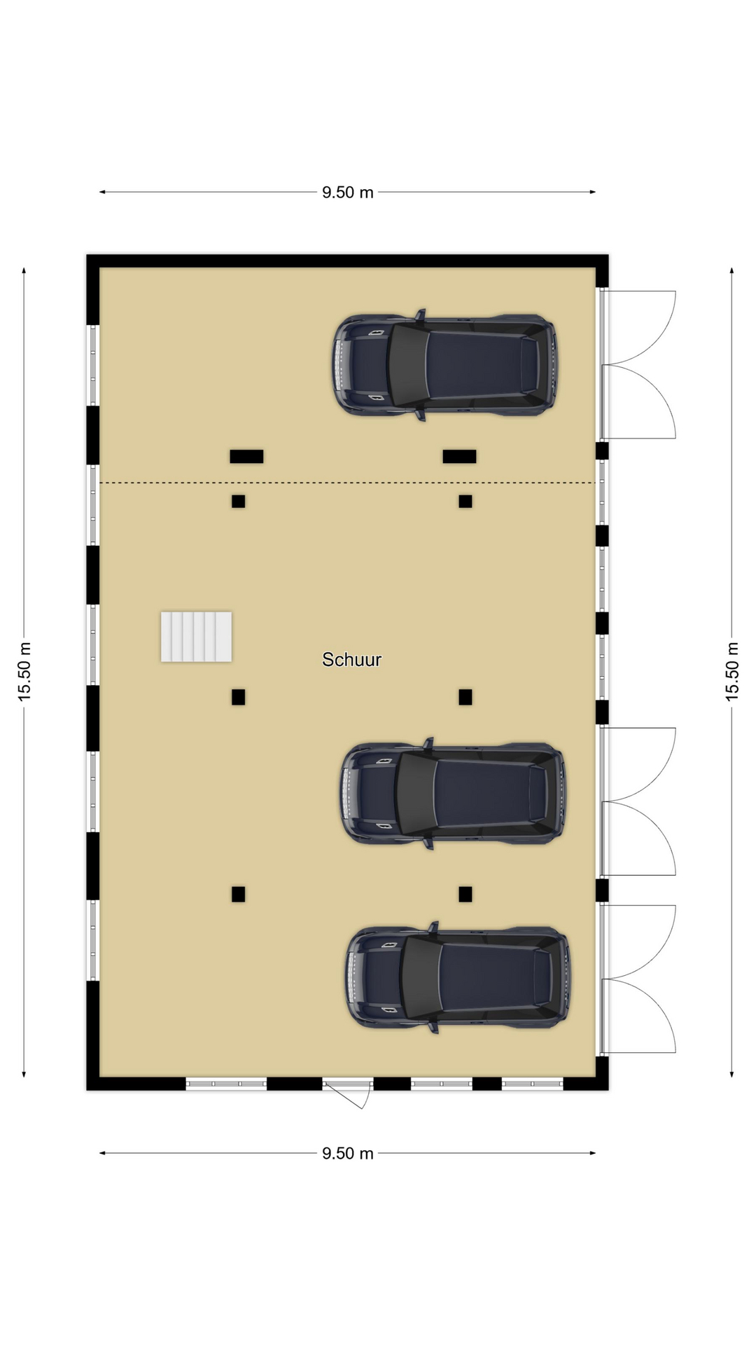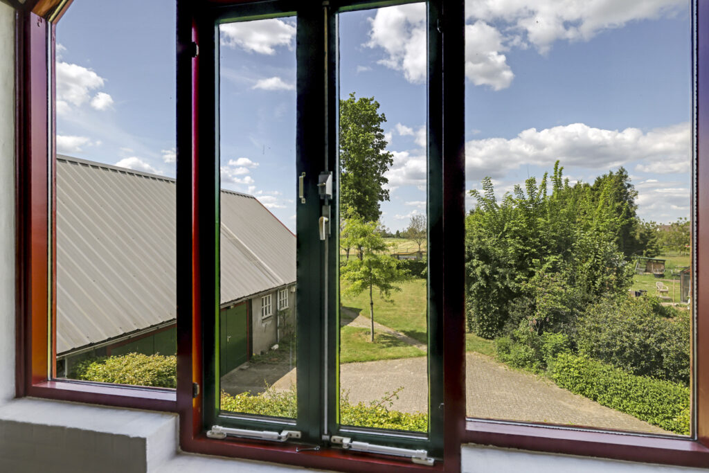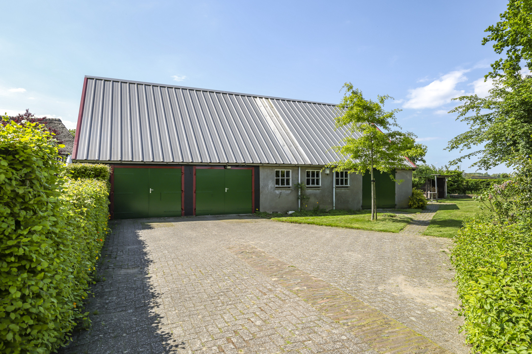 Aan het einde van de ‘oprijlaan’ staat er schuin achter de woning een bijzonder fraaie schuur / loods met een grondoppervlak van ca. 150m2 (!) groot. Het betreft de koeienstal die bij de voormalige woonboerderij hoorde en na verloop van tijd is gerenoveerd tot een degelijke schuur/loods met 3 garagedeuren waardoor je meerdere auto’s of andere voertuigen naar binnen kunt rijden.
