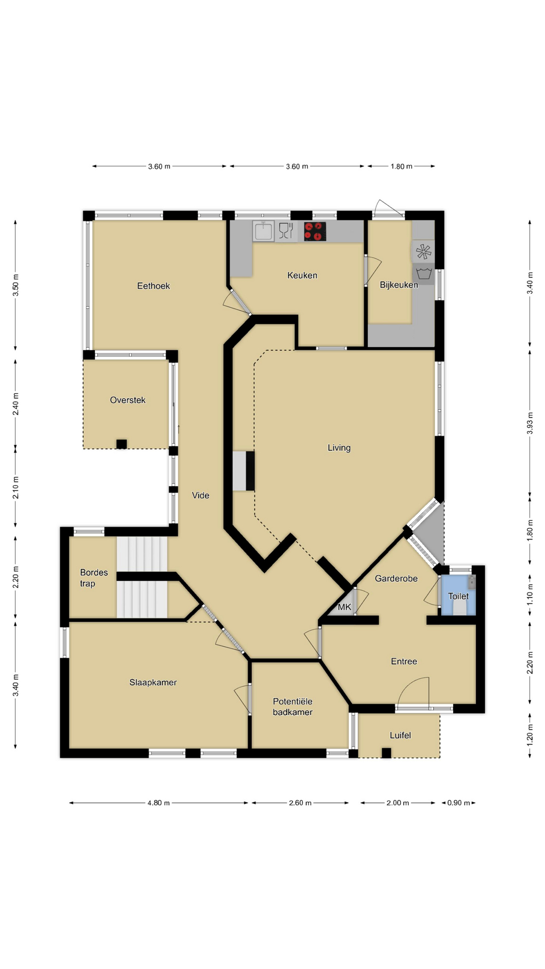 Mogelijkheid tot slaapkamer en badkamer op de begane grond