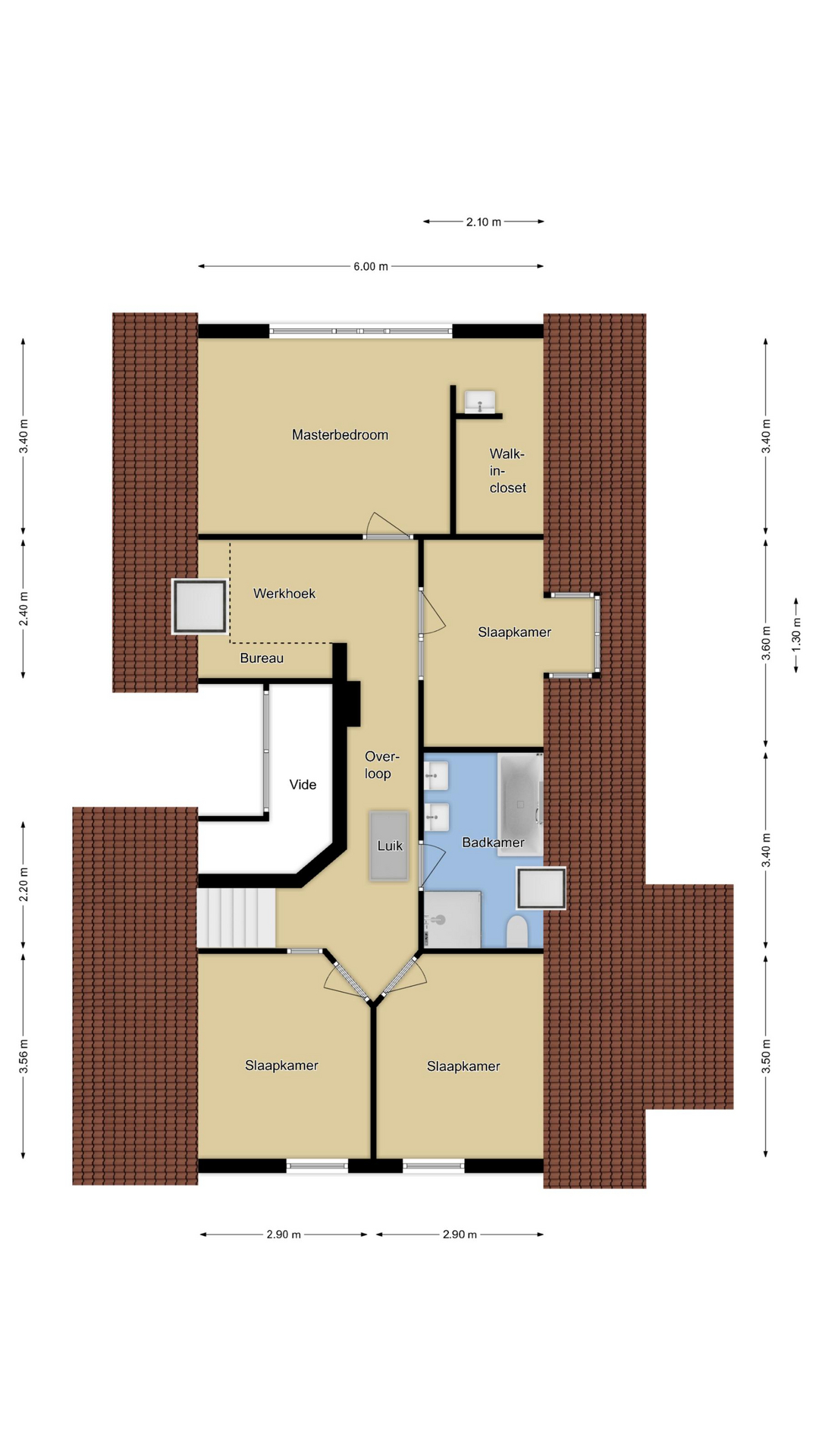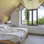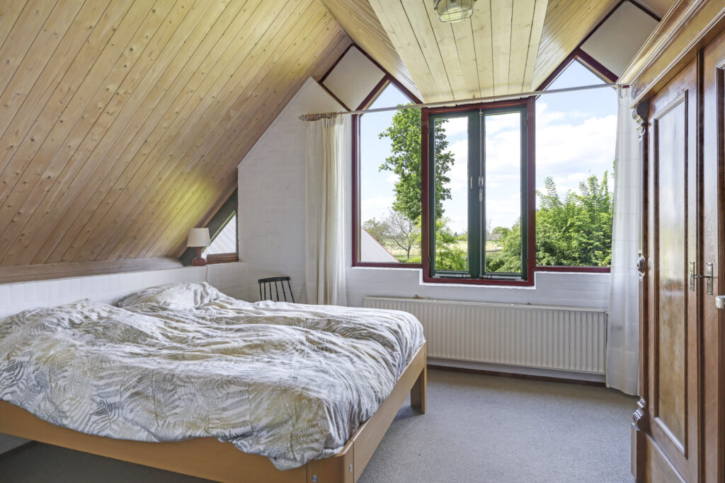 Op de verdieping zijn 4 volwaardige slaapkamers te vonden van respectievelijk 20m2, 10m2, 10m2 en 8m2 groot. De grootste slaapkamer betreft de masterbedroom en is aan de achterzijde van de woning gelegen. Hier geniet je een panoramisch vrij uitzicht over de weilanden. Deze kamer biedt ruimte aan een groot 2-persoons bed en een walk-in-closet met eigen wastafel. Opvallend is ook hier weer de hoogte tot in de nok hetgeen een extra dimensie geeft. De andere kamers zijn prima kinderkamers waarbij 1 kamer een extra dakkapel heeft. Dit zou ook een prima werk- of hobbykamer zijn waarbij je aan de zijkant groen wegkijkt in de eigen tuin.