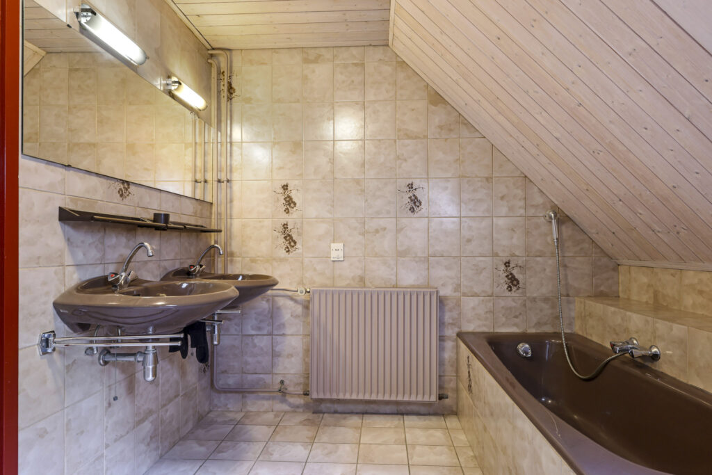 Geheel in verhouding met de grootte van de woning, is ook de badkamer goed bemeten. Deze is lekker ruim opgezet en bovendien compleet ingedeeld met alle wenselijke sanitair. Denk daarbij aan een ligbad, een separate douchecel, 2 wastafels en een 2e toilet. De badkamer heeft nog een ‘retro’ uitstraling, maar is wel degelijk en functioneel afgewerkt. Mocht je je eigen stempel op de woning willen drukken, dan liggen ook hier zeker kansen. Het aanwezige (nieuwe) dakvenster met rolhor zorgt niet alleen voor een fijne lichtinval, maar ook voor een ideale ventilatiemogelijkheid.