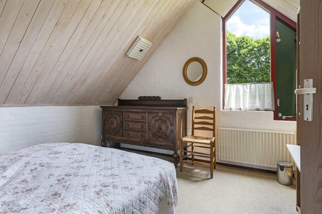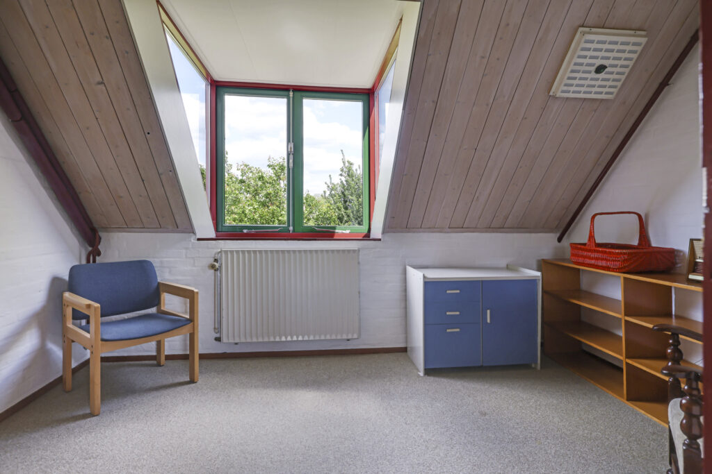 Een vlizotrap op de overloop geeft toegang tot een verrassende zoldervliering. Met een nokhoogte van meer dan 2 meter, kun je hier goed staan en is de ruimte optimaal te benutten als opbergruimte voor seizoenspullen zoals koffers, seizoenskleding en kerstspullen. Ook vinden we hier de CV-ketel terug.