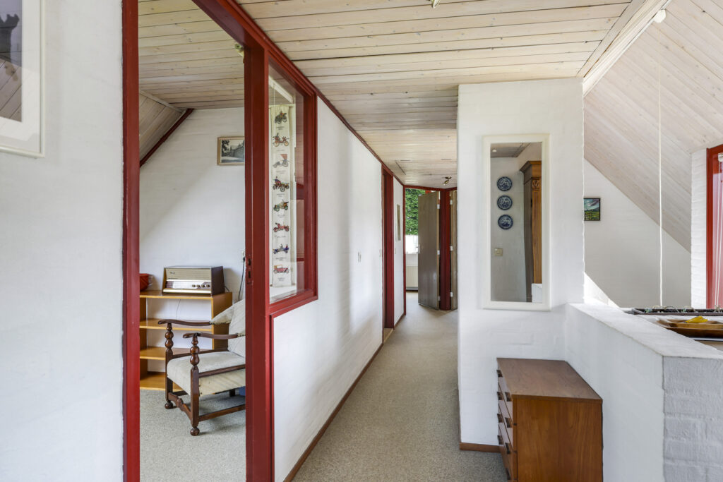 Noemenswaardig zijn de dik opgemetselde wanden rondom de living waardoor je creatief kunt zijn met verschillende zithoekjes, de TV-opstelling en de aankleding met accessoires. De ingebouwde houtkachel heeft daarbij een mooie centrale plek in de woning gekregen. En ook de opgemetselde bordestrap naar de overloop met vide is stijlvol bedacht en zorgt voor een extra dimensie in een woning die in geen enkel opzicht ‘standaard’ te noemen is. Daarbij komt dat de gehele begane grondvloer is voorzien van vloerverwarming en voor een hoog comfortgehalte zorgt. De witgesausde muurafwerkingen zorgen verder voor een fris en ruimtelijk karakter.