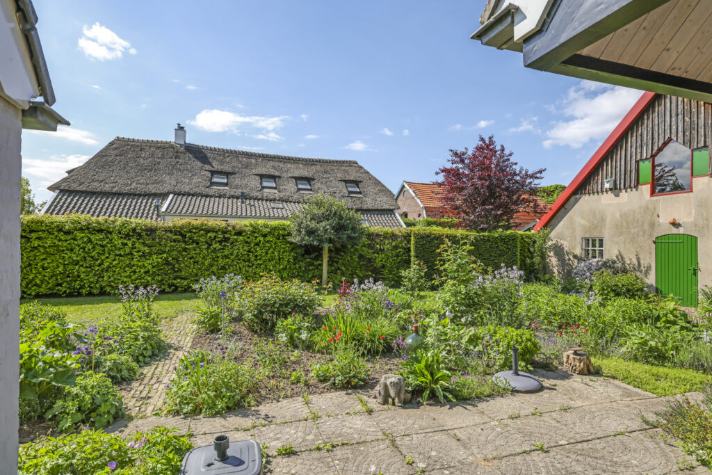 De tuin is verder aangelegd met bloemborders, meerdere gazonnen en verschillende terrassen waardoor je altijd wel een plekje in de zon óf in de schaduw kunt vinden. Achterin de tuin zijn nog 2 overkappingen te vinden waar je kachelhout kunt opslaan. En om deze tuin ook op warme zomerdagen groen te kunnen houden, is er een puls geslagen waardoor je gratis grondwater kunt oppompen.
