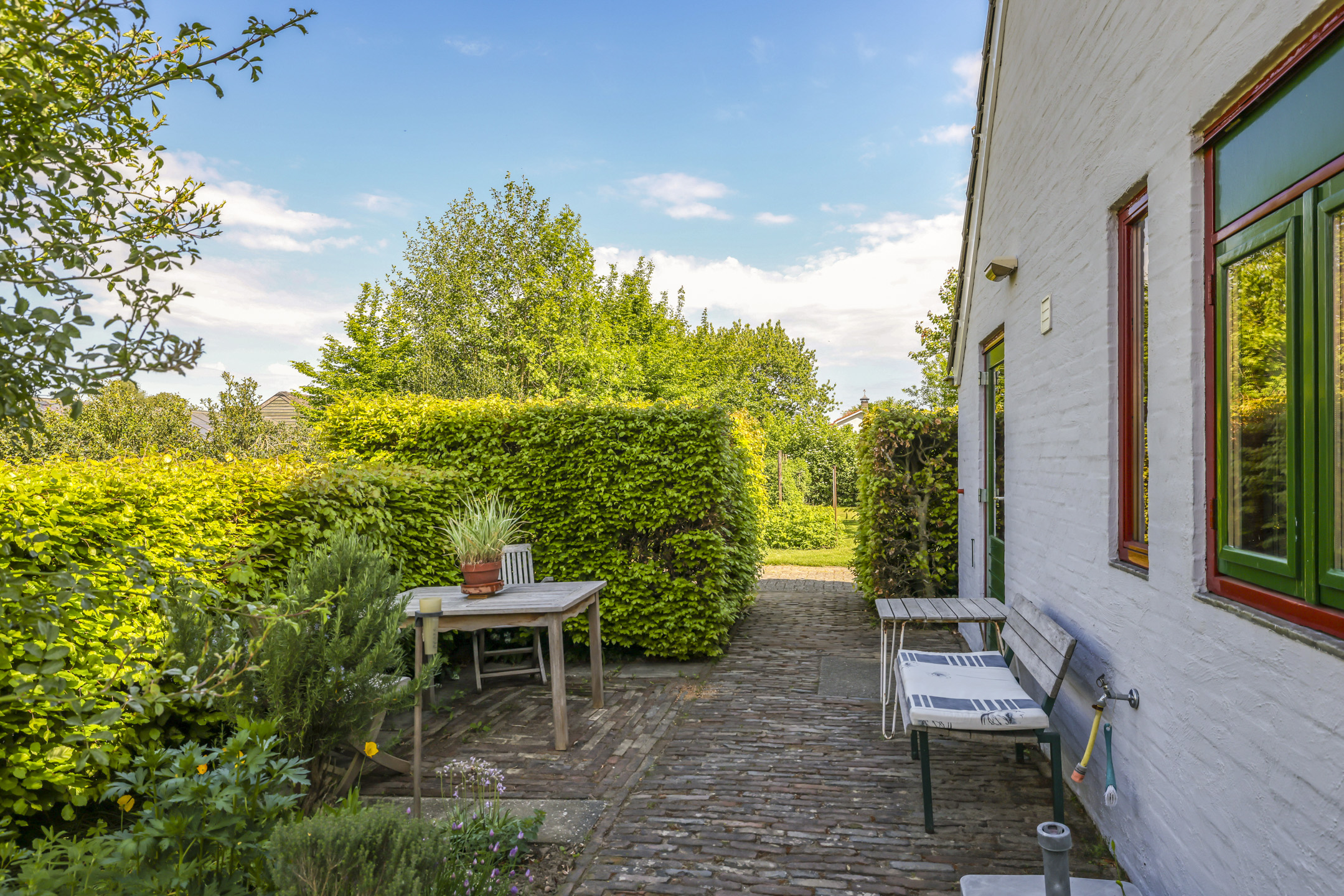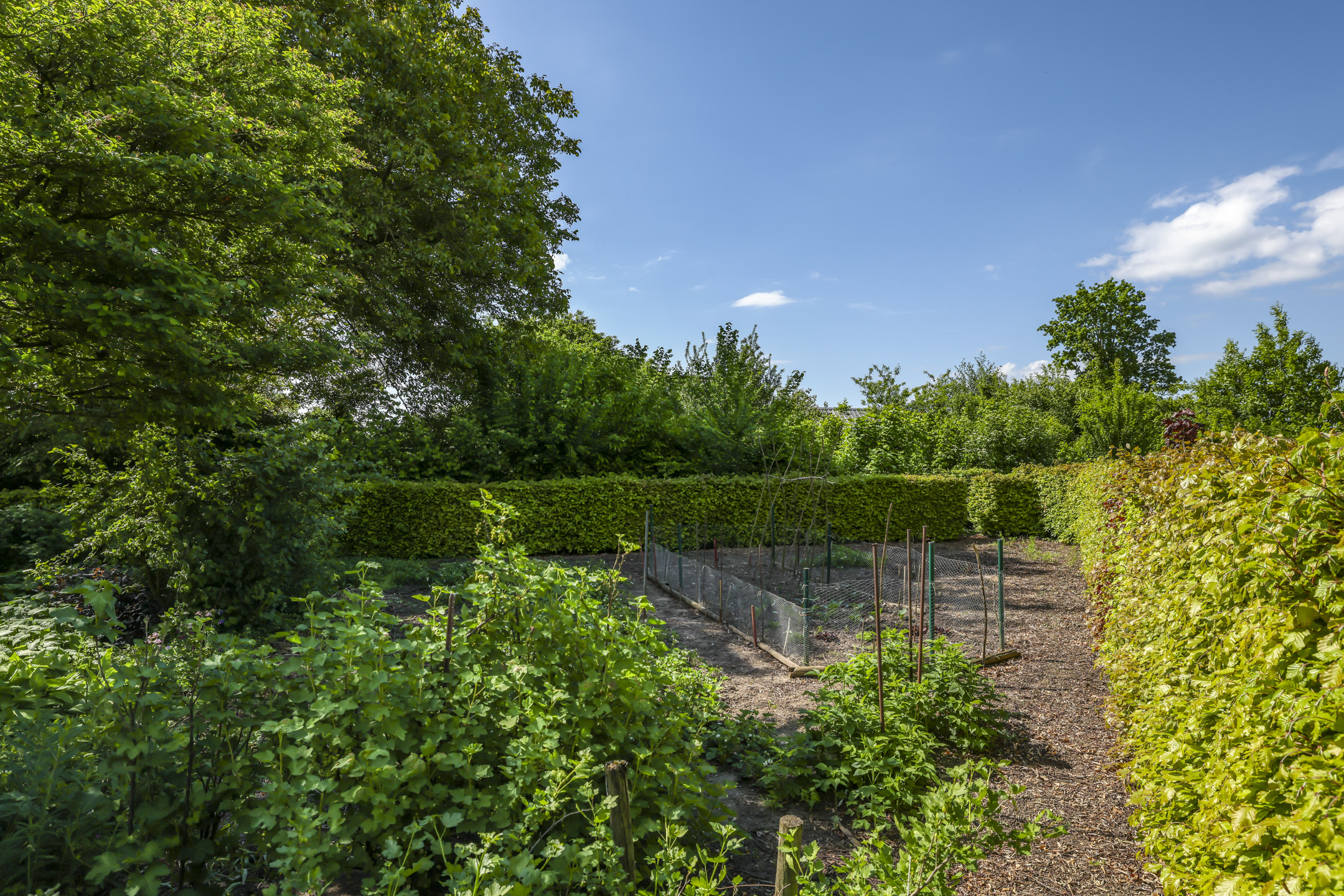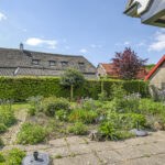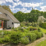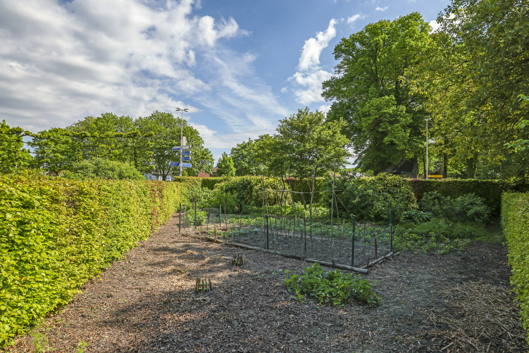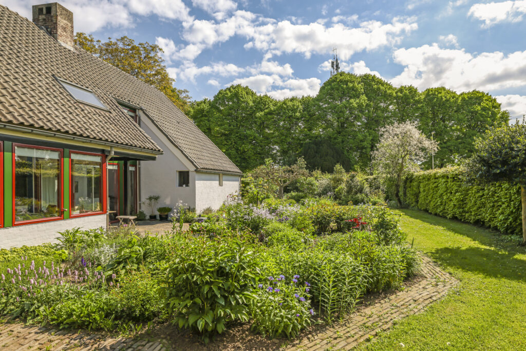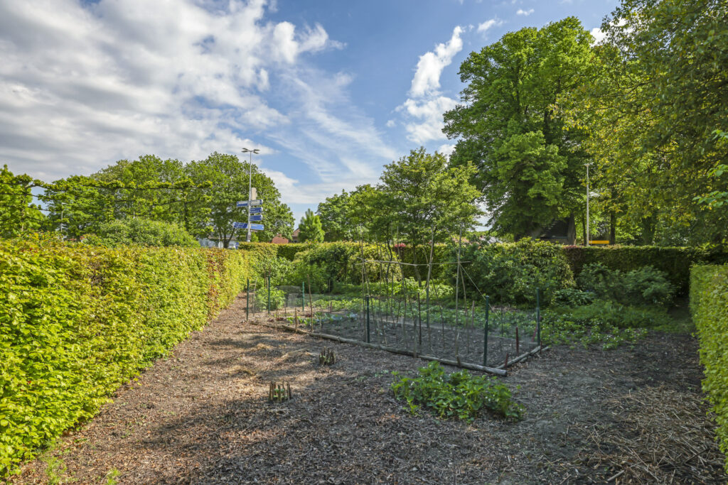 Groen en natuurrijk karakter door verschillende planten, bomen en moestuin
