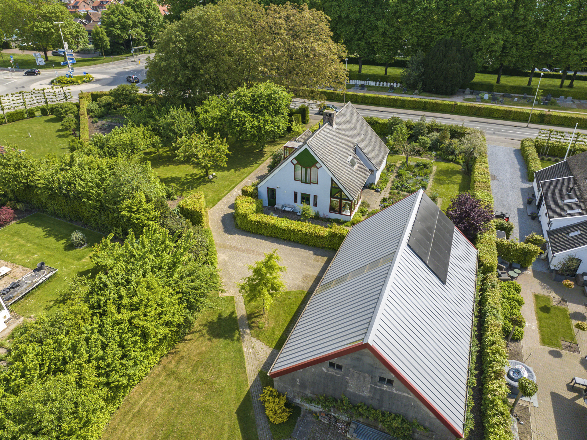 Zeer verrassend en onder architectuur gebouwd VRIJSTAAND WOONHUIS met uitzonderlijke raampartijen, fraaie lichtinval en unieke woonbeleving. Aan het einde van de beschutte oprijlaan staat een grote GARAGE/LOODS van ca. 150m2 groot met verdieping en een 4,5 meter hoge nok in de nieuwe kap. Er zijn 14 zonnepanelen geïnstalleerd.