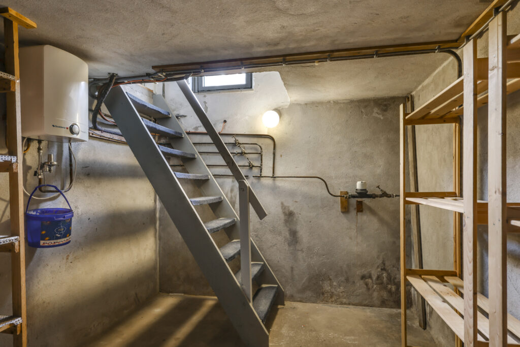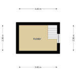 Proviandkelder van 3,4 x 2,3 meter met stahoogte van 1,8 meter.