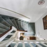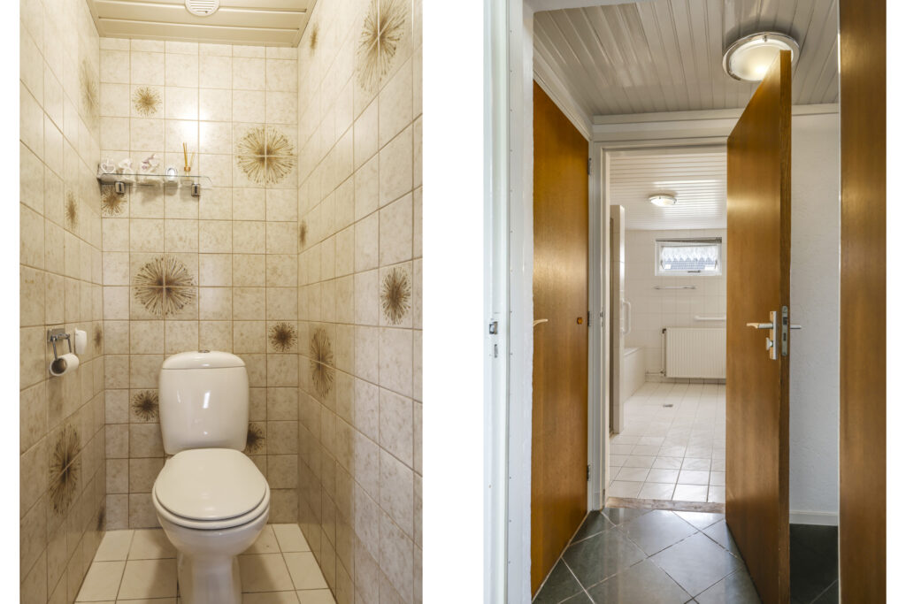 Doorloophal met toegang tot het toilet, de badkamer en de garage.