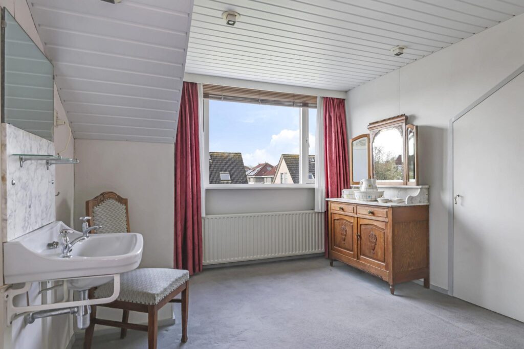 De verdieping telt drie slaapkamers, allemaal voorzien van goede afmetingen. Doordat de slaapkamer aan de achterzijde is uitgebouwd, voelt het aan als een ‘balzaal’. Hierdoor kun je er met gemak een groot 2-persoons bed kwijt. Tevens zorgt de extra dakkapel voor een fraai zicht in de achtertuin. De eigen wastafel op de slaapkamer is eveneens een pluspunt.