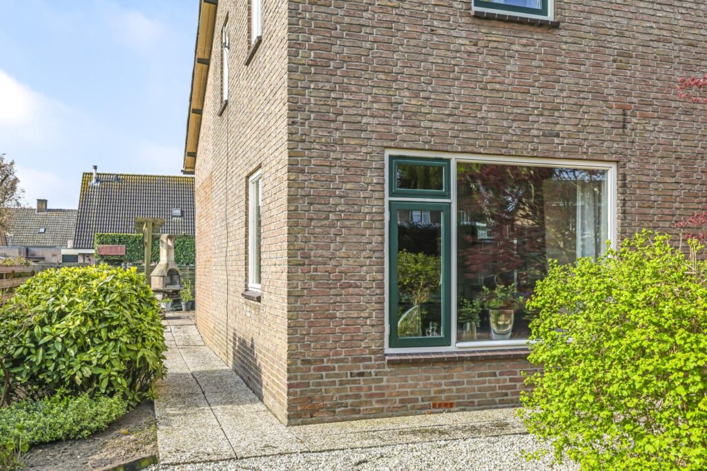 Achter de woning ervaar je opvallend veel privacy dankzij de lage bebouwing aan de achterzijde. Hierdoor kun je ongestoord genieten van je eigen groene oase. De tuin is rijkelijk begroeid met volwassen beplanting, een moestuin én voldoende ruimte voor bijvoorbeeld speeltoestellen voor kinderen. En ben je een zonliefhebber, dan zal je de zuid/westligging zeker kunnen waarderen.